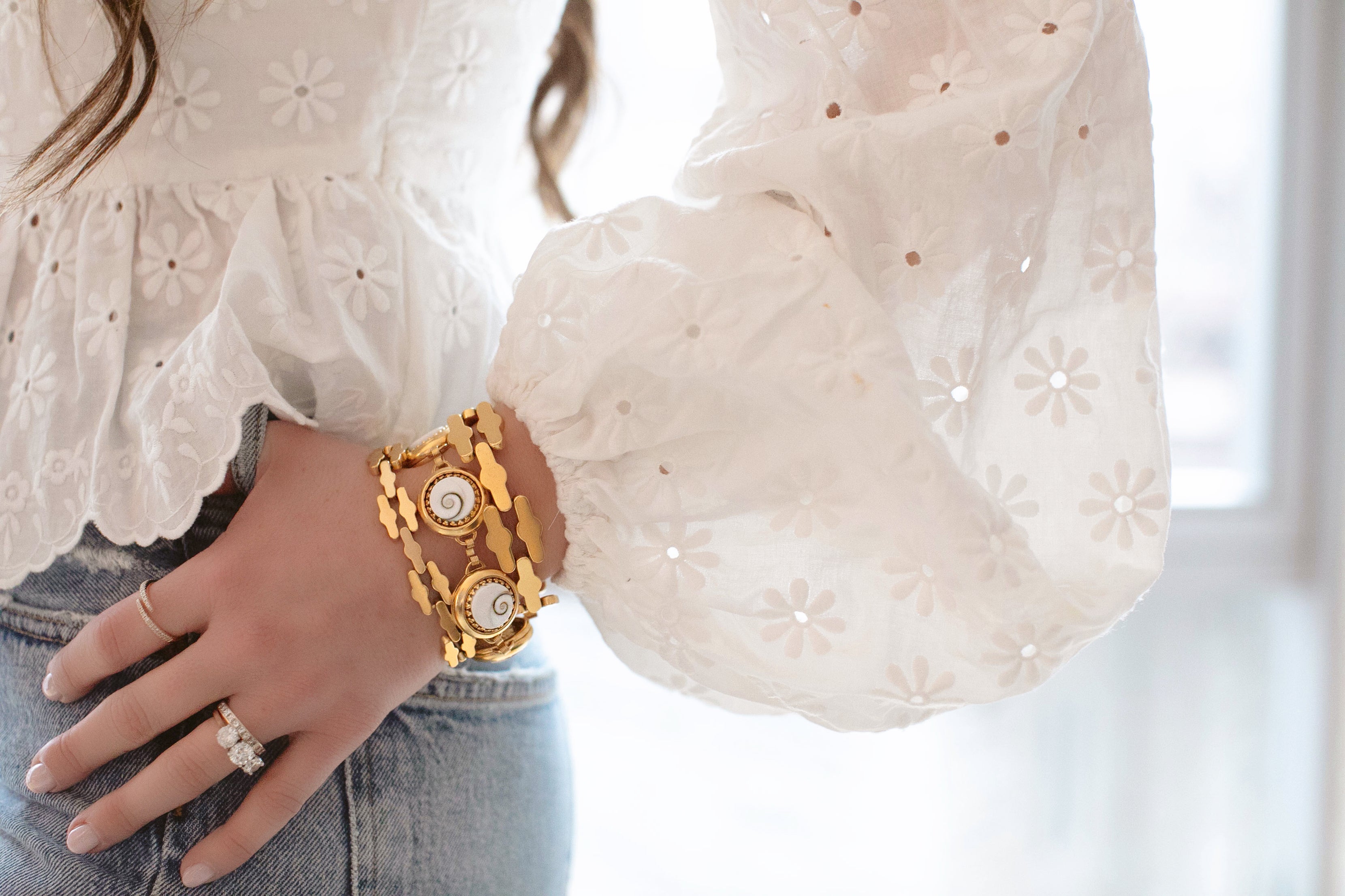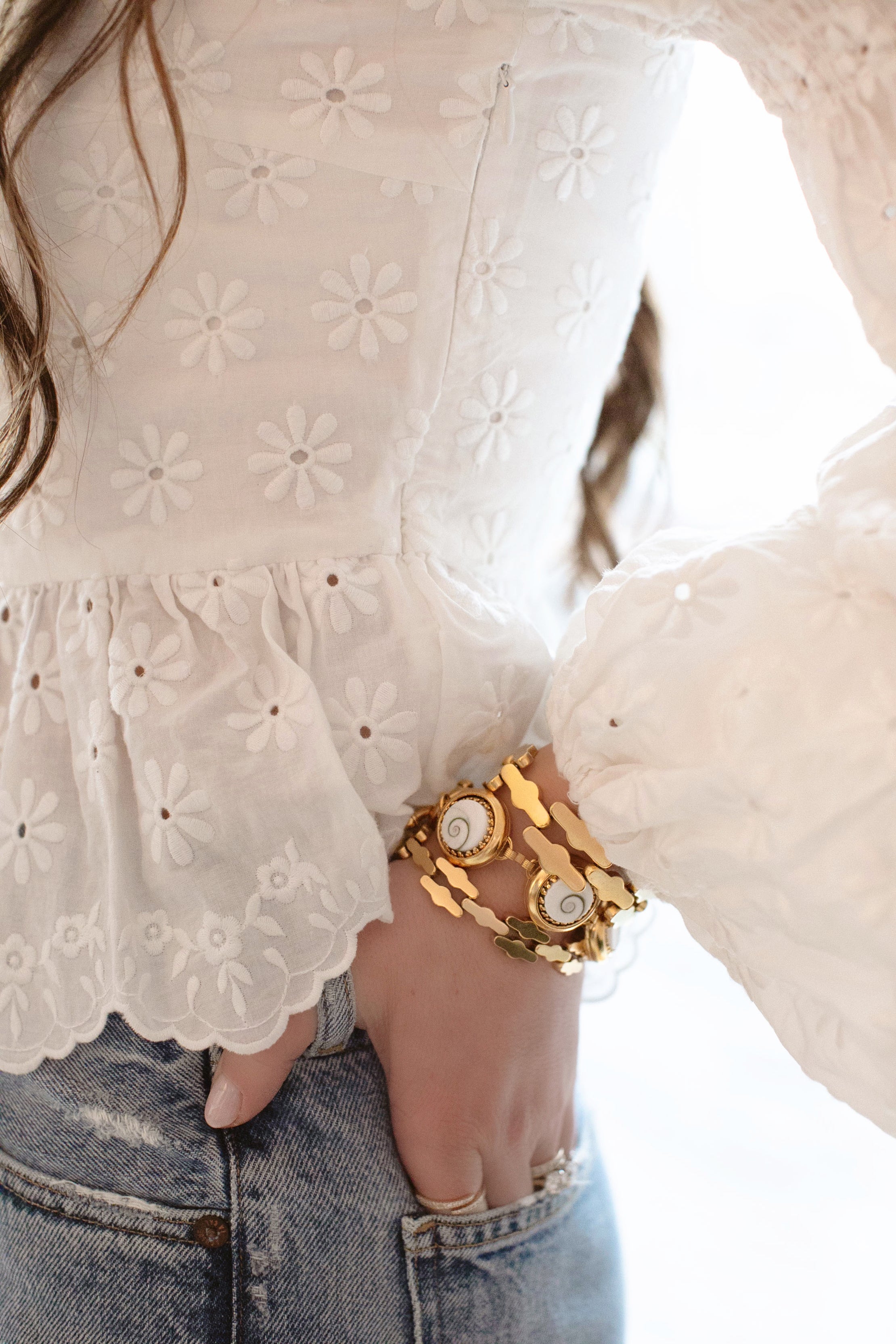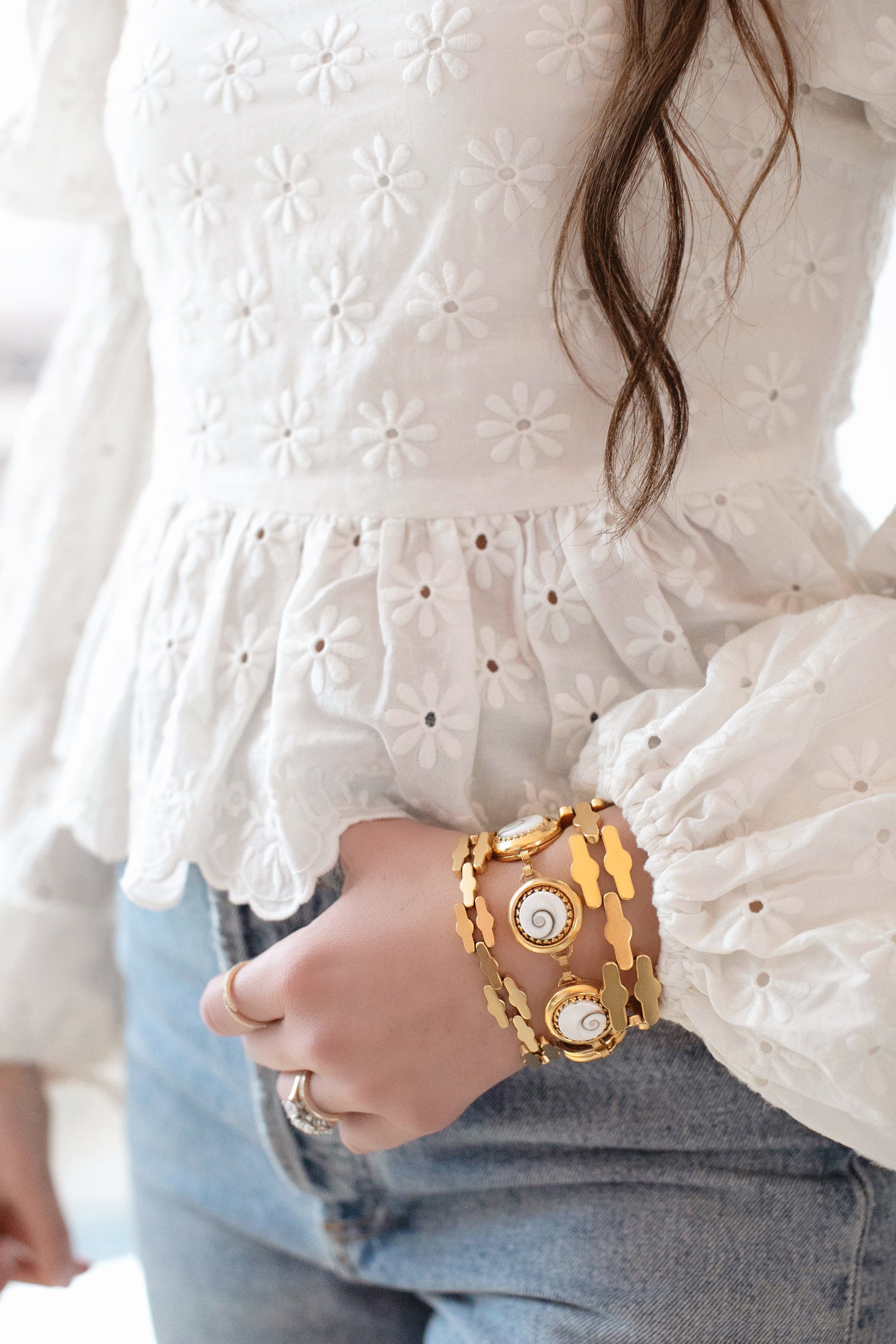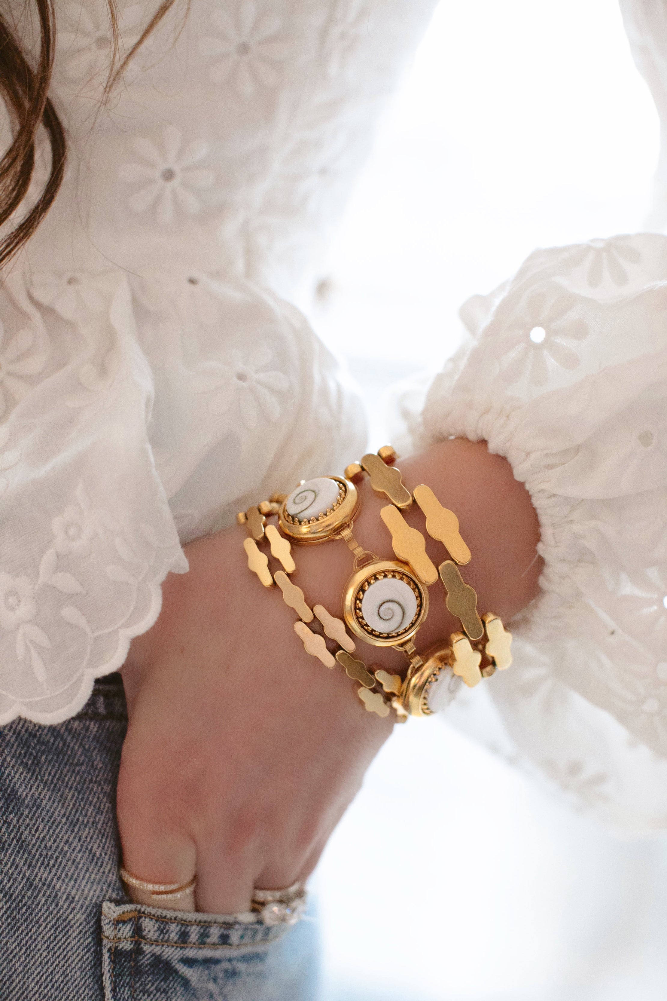 - Operculum Shell cabochons on 24k antique gold plated brass settings