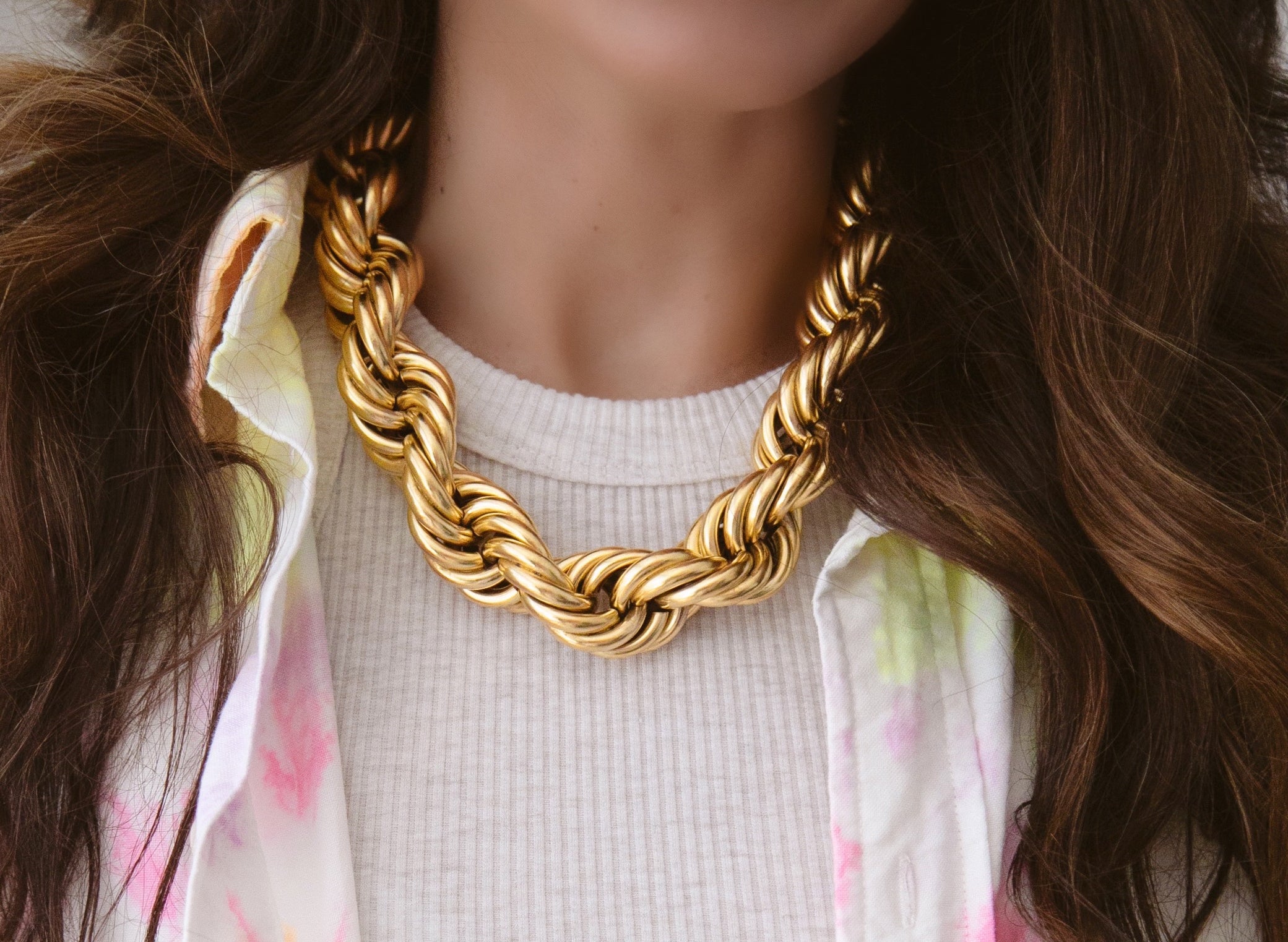 - A Dark Green Aventurine heart hangs from a 24K antique gold plated brass 25mm rolled rope chain