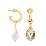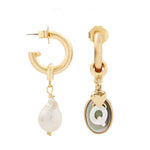 - Paired with a freshwater baroque pearl hanging from a 24k antique gold plated brass hoop on stainless steel hypoallergenic posts