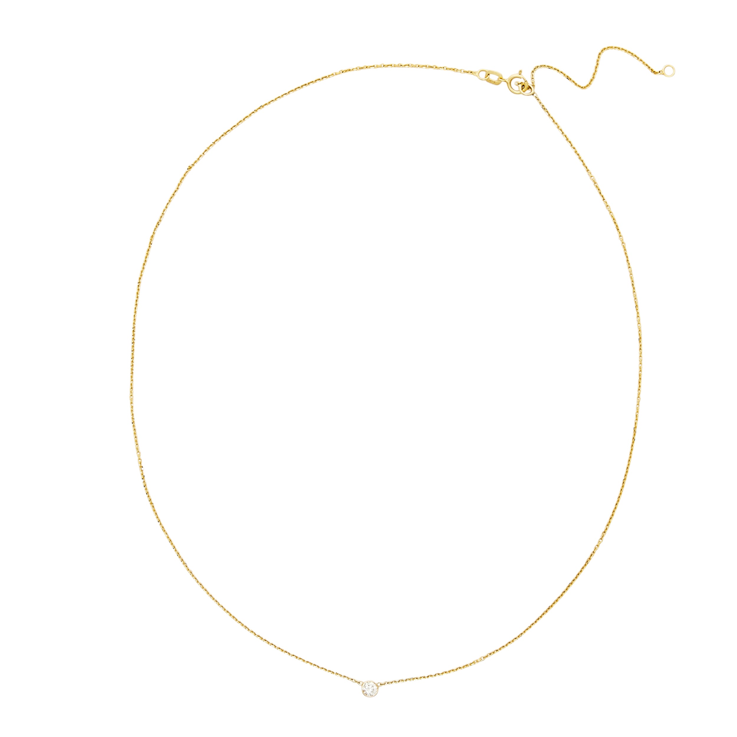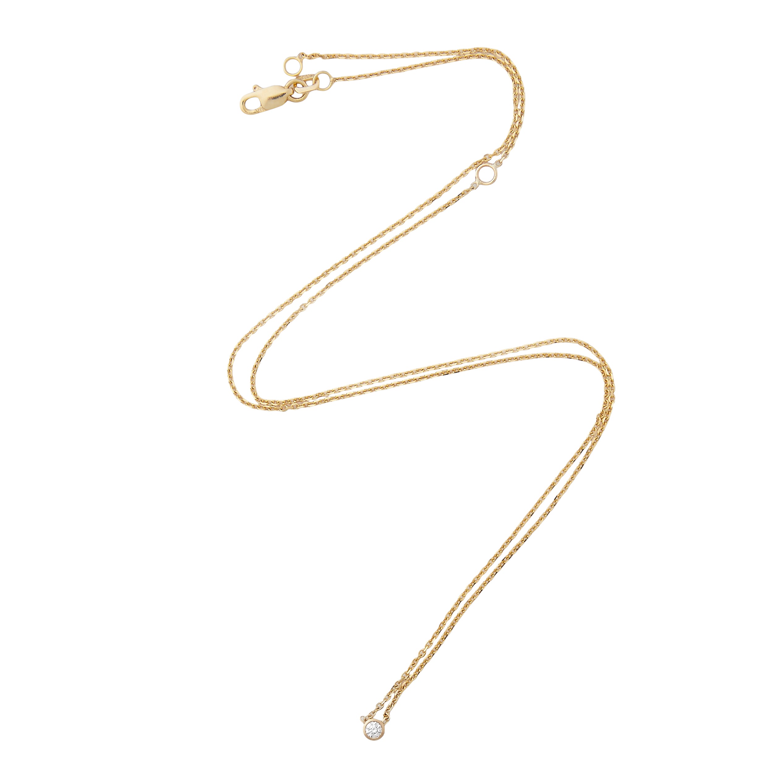 - 14k gold diamond cut chain adorned with a bezel-set lab grown diamond