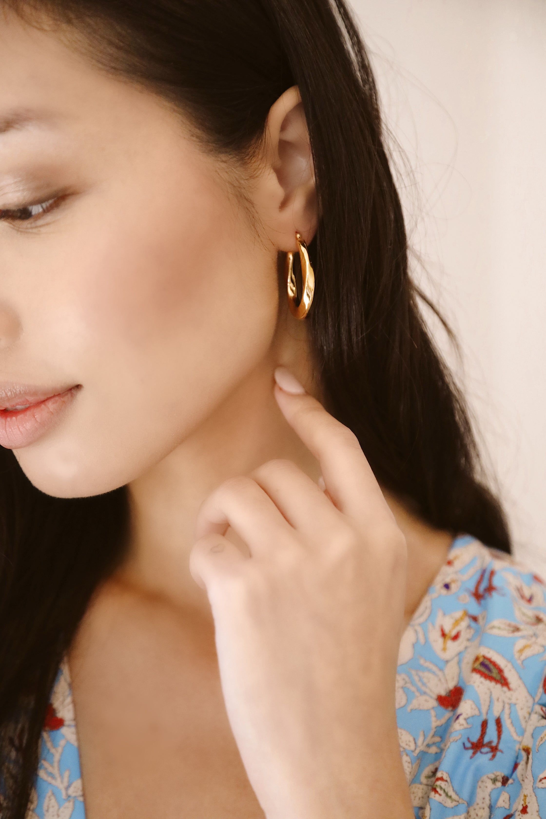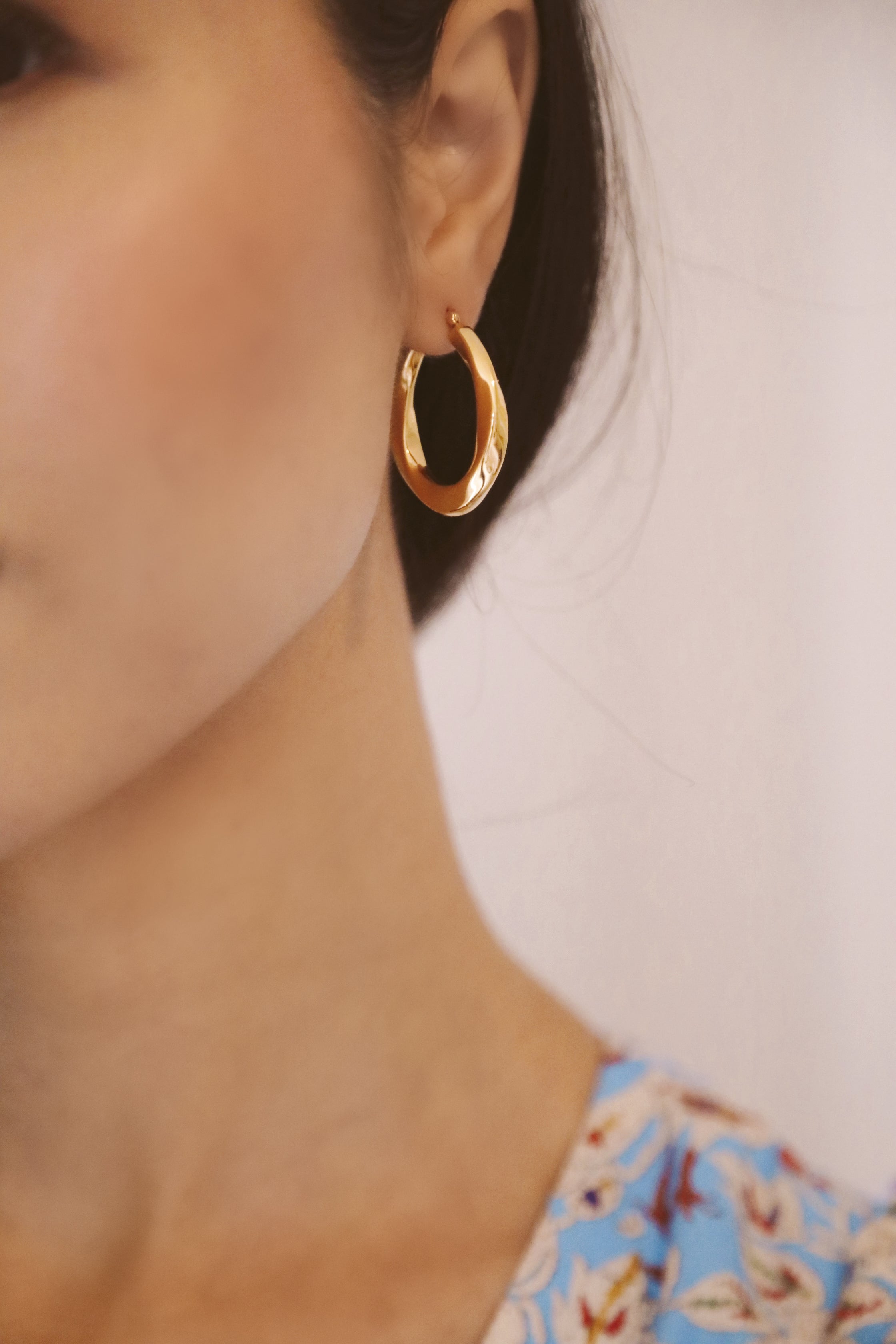 A twist on the classic gold hoop! These golden stunners will take any ear stack to the next level.