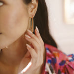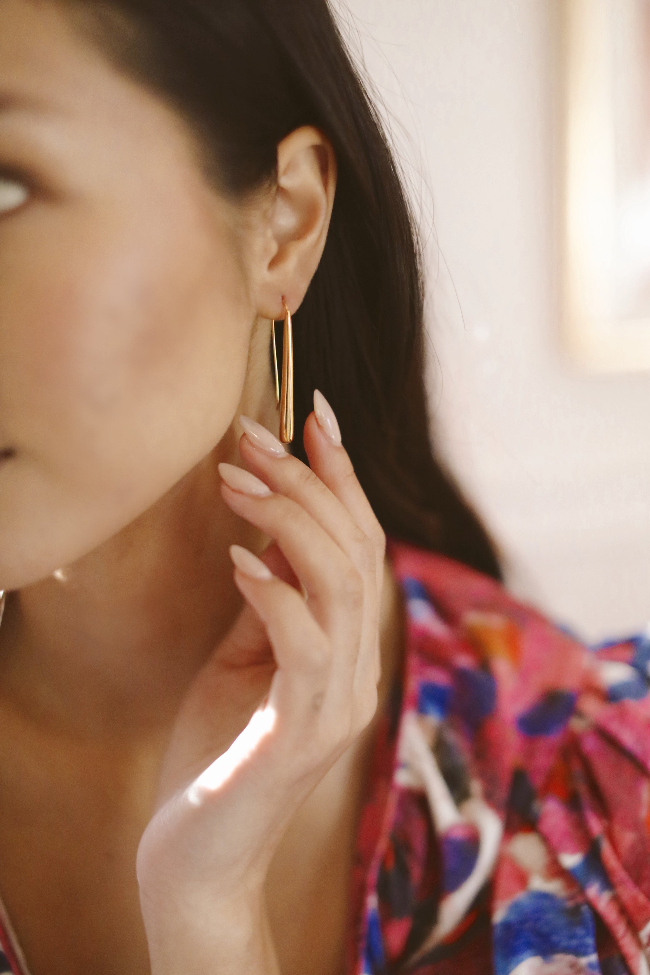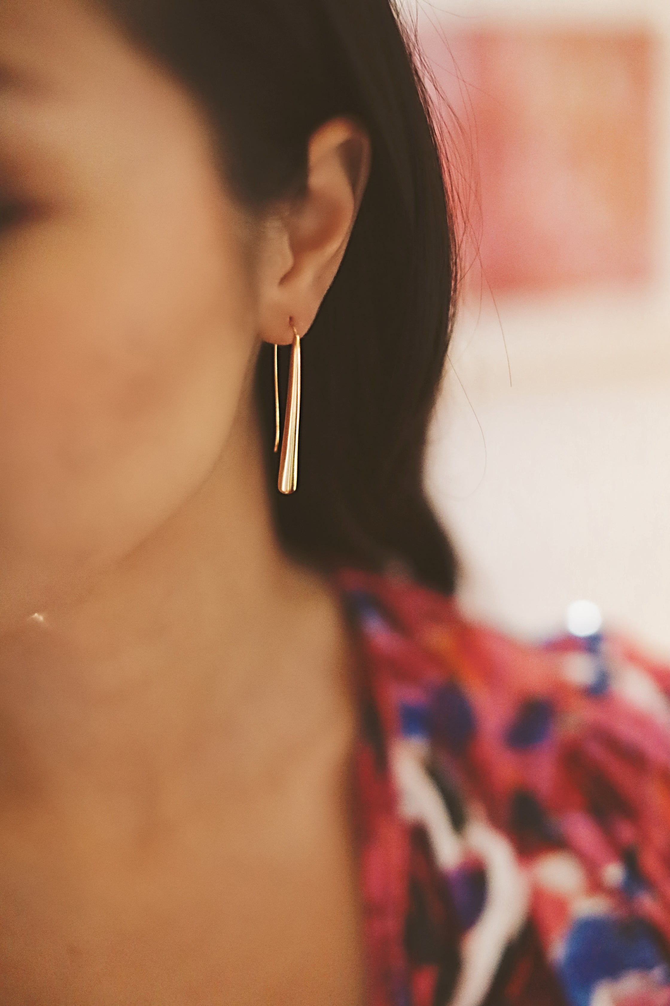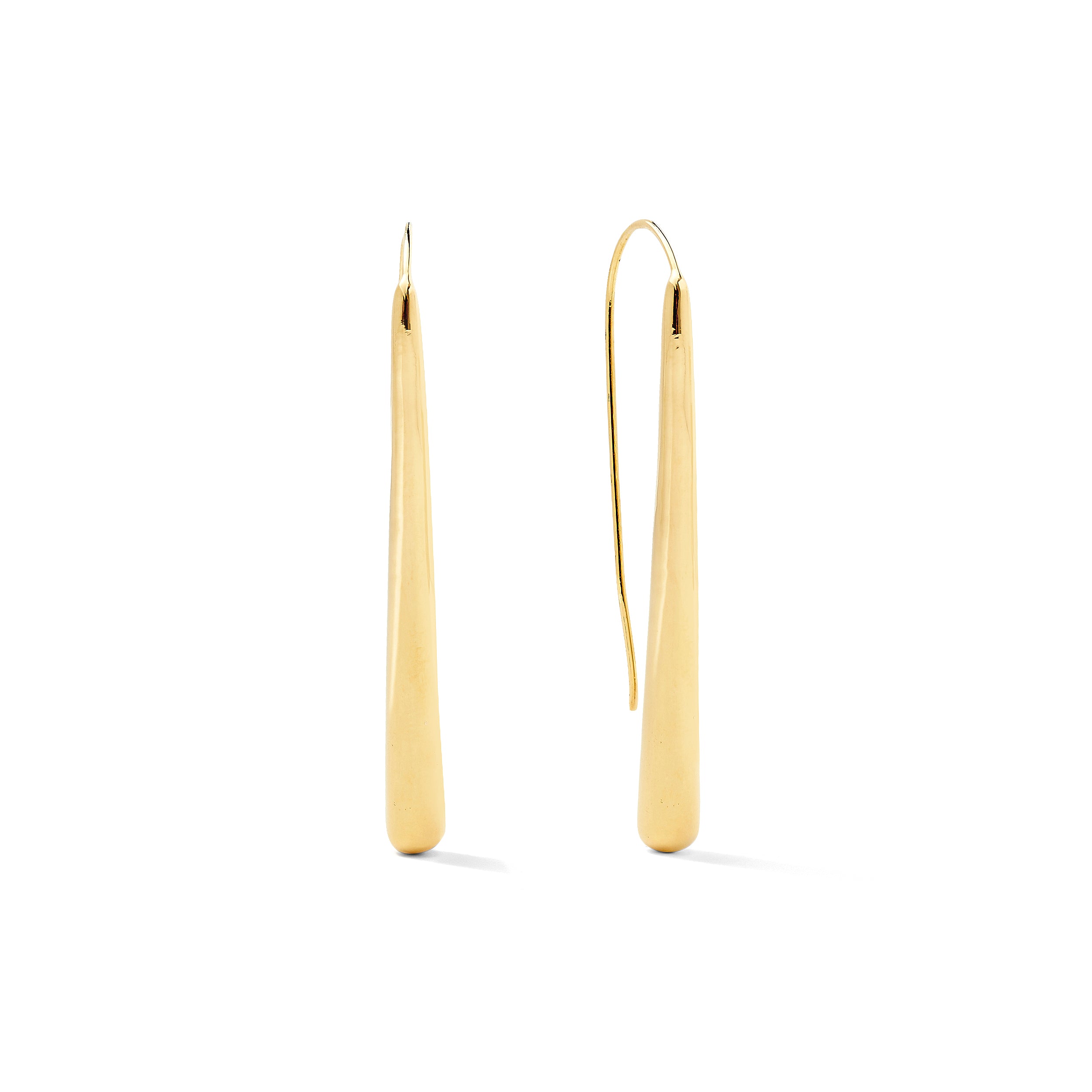 - 14k gold hallow elongated teardrop-shaped threader earrings