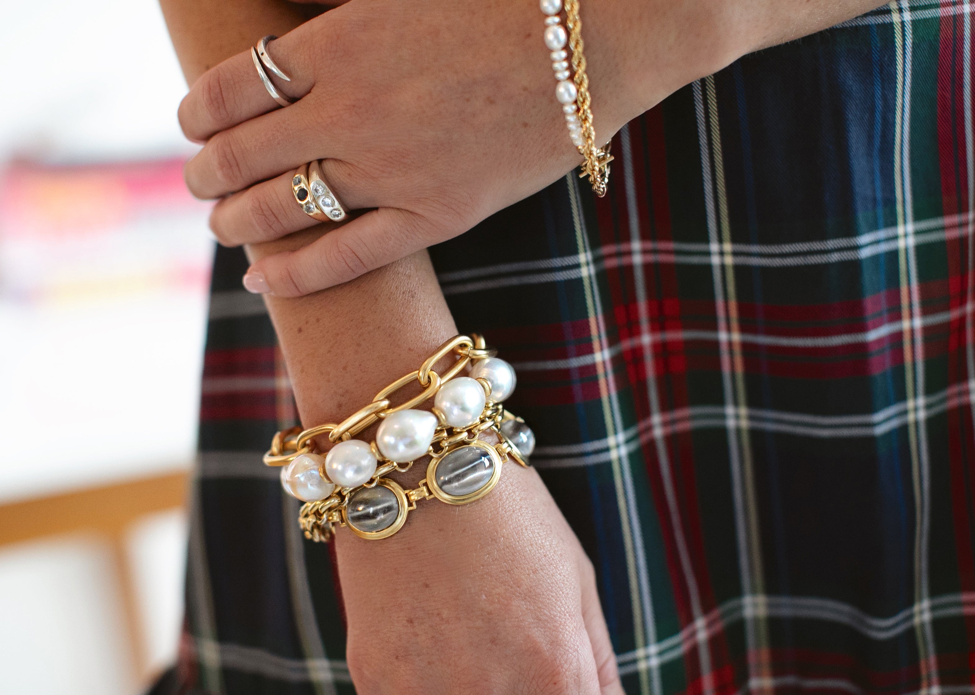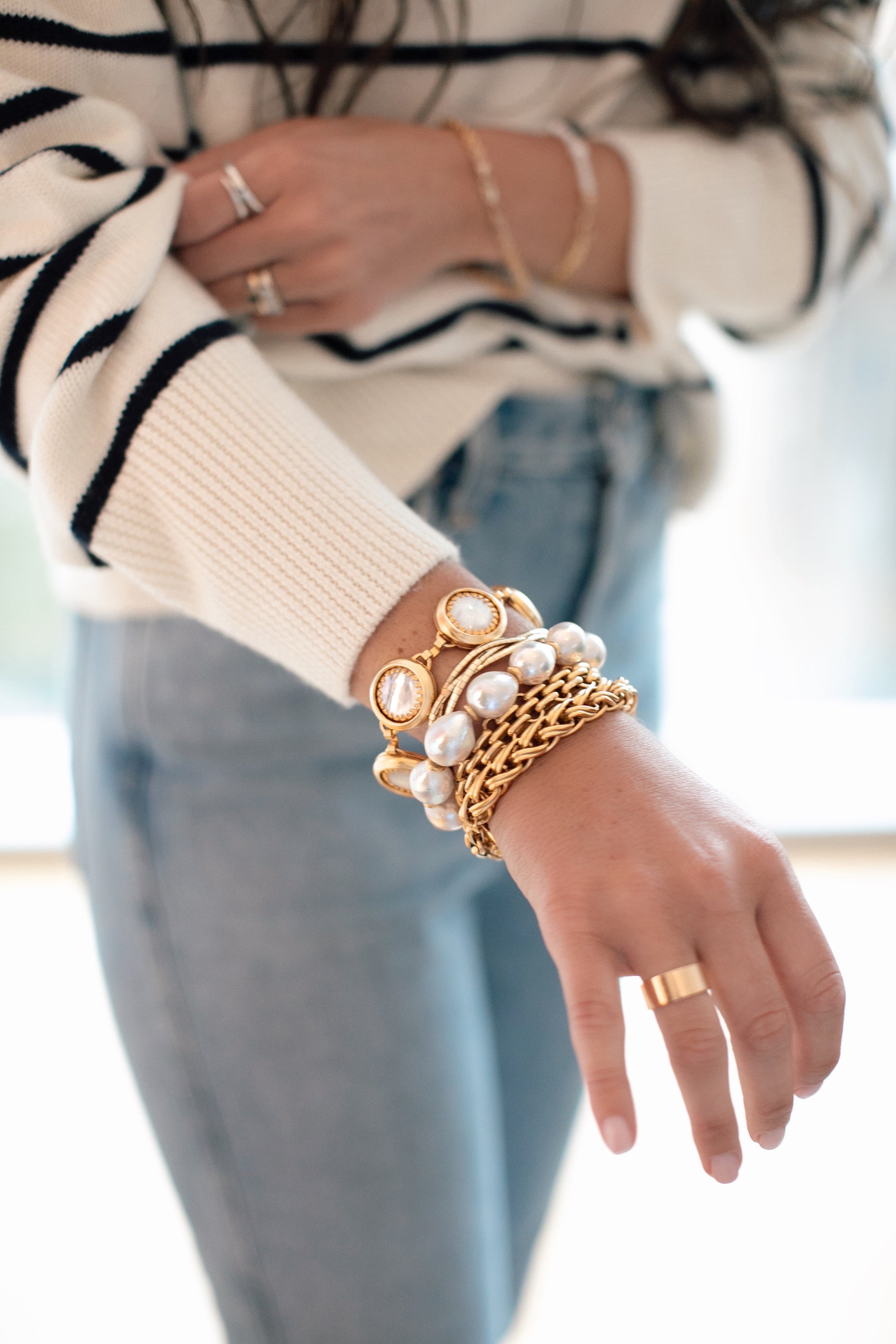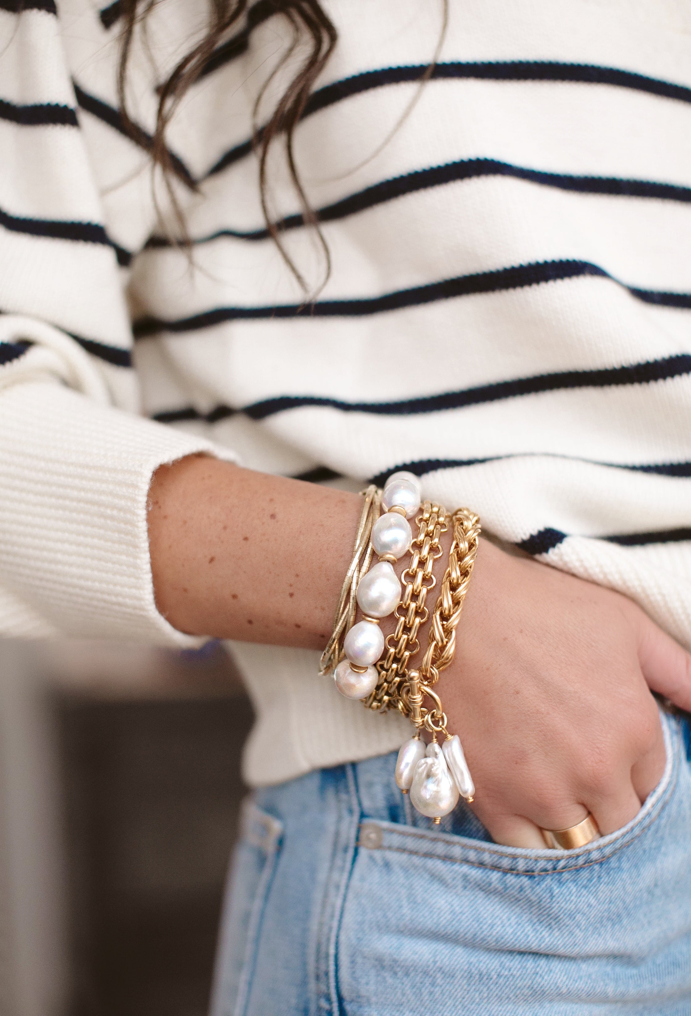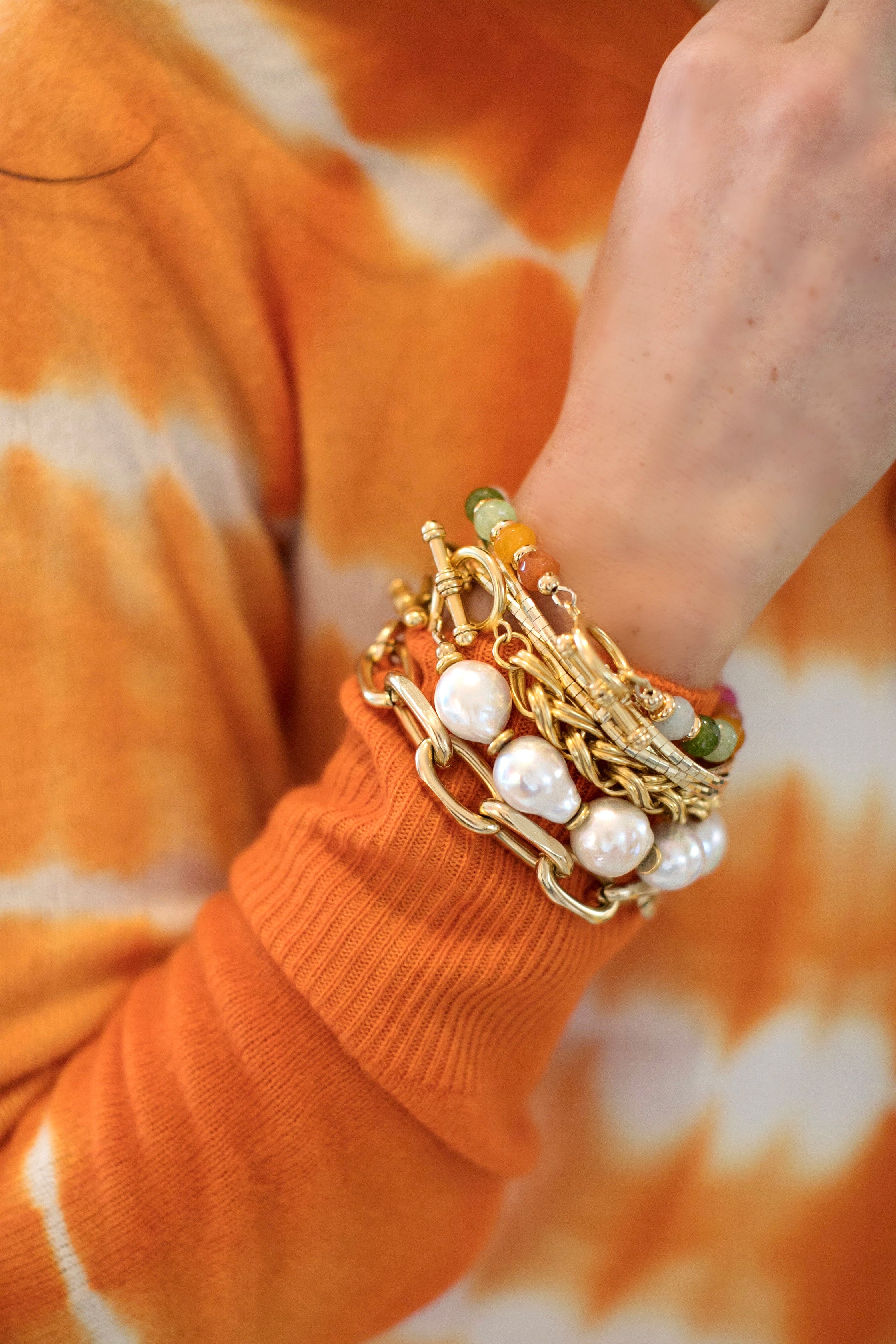 - A strand of baroque freshwater pearls and 24k antique gold plated slices