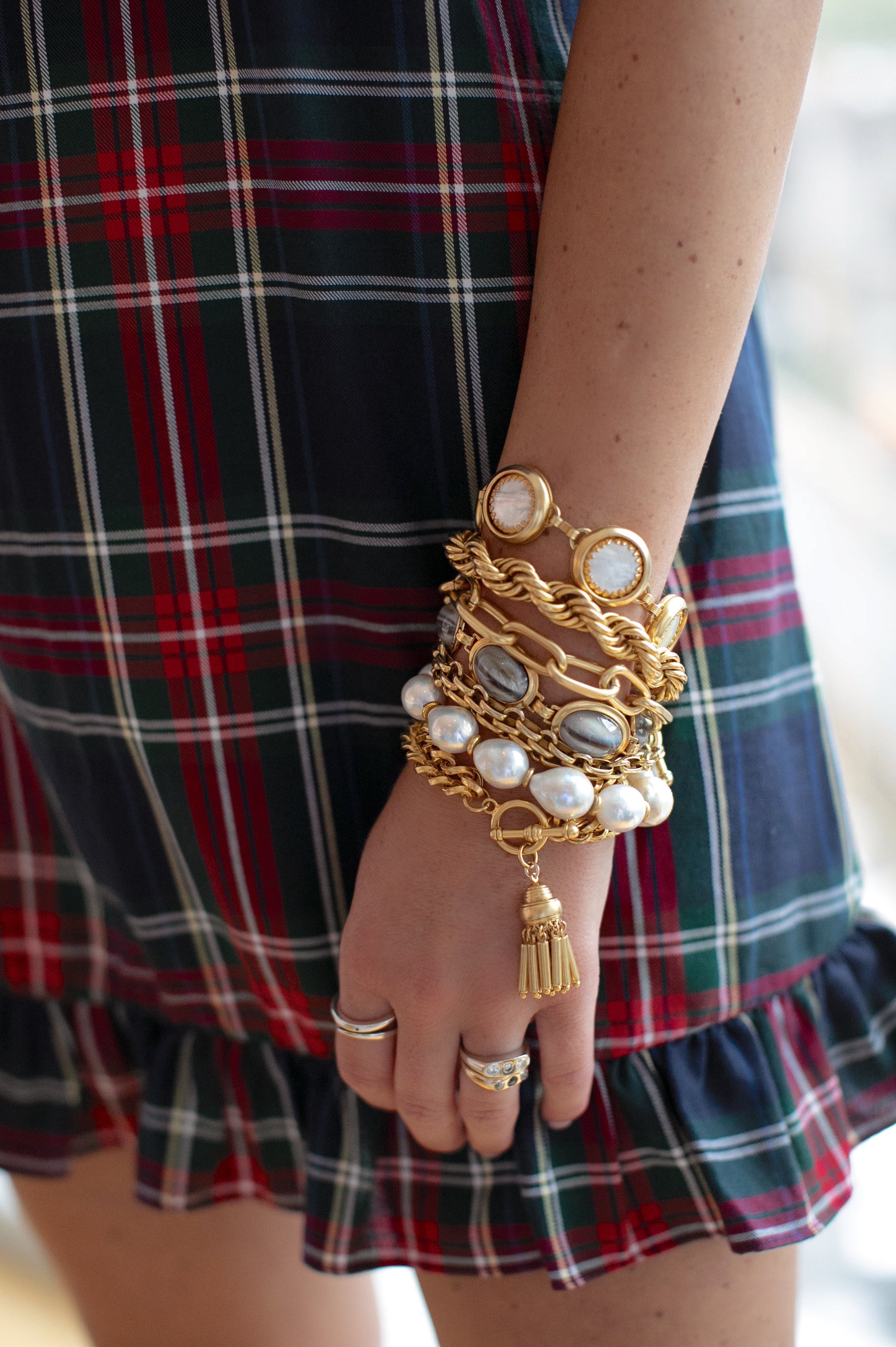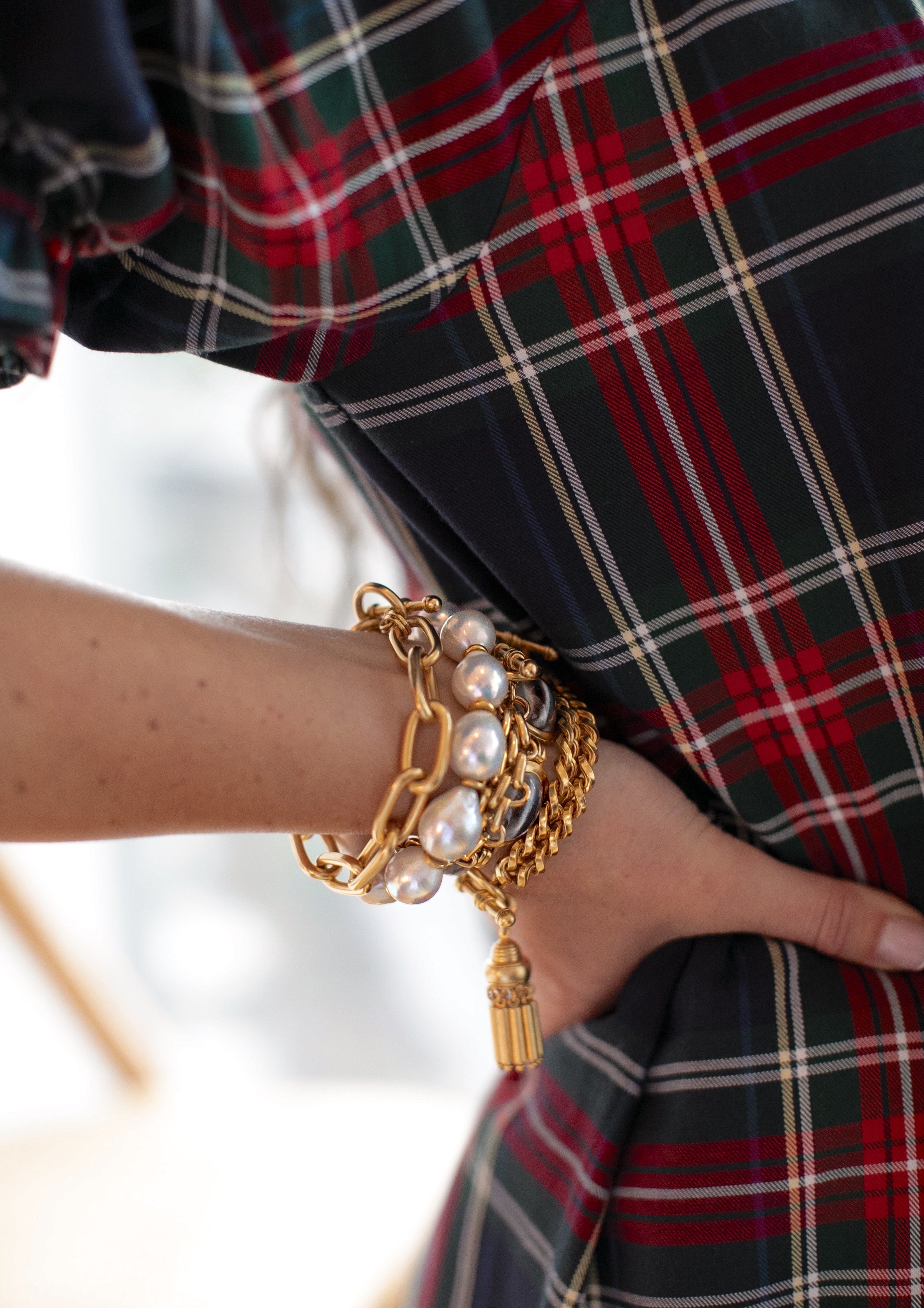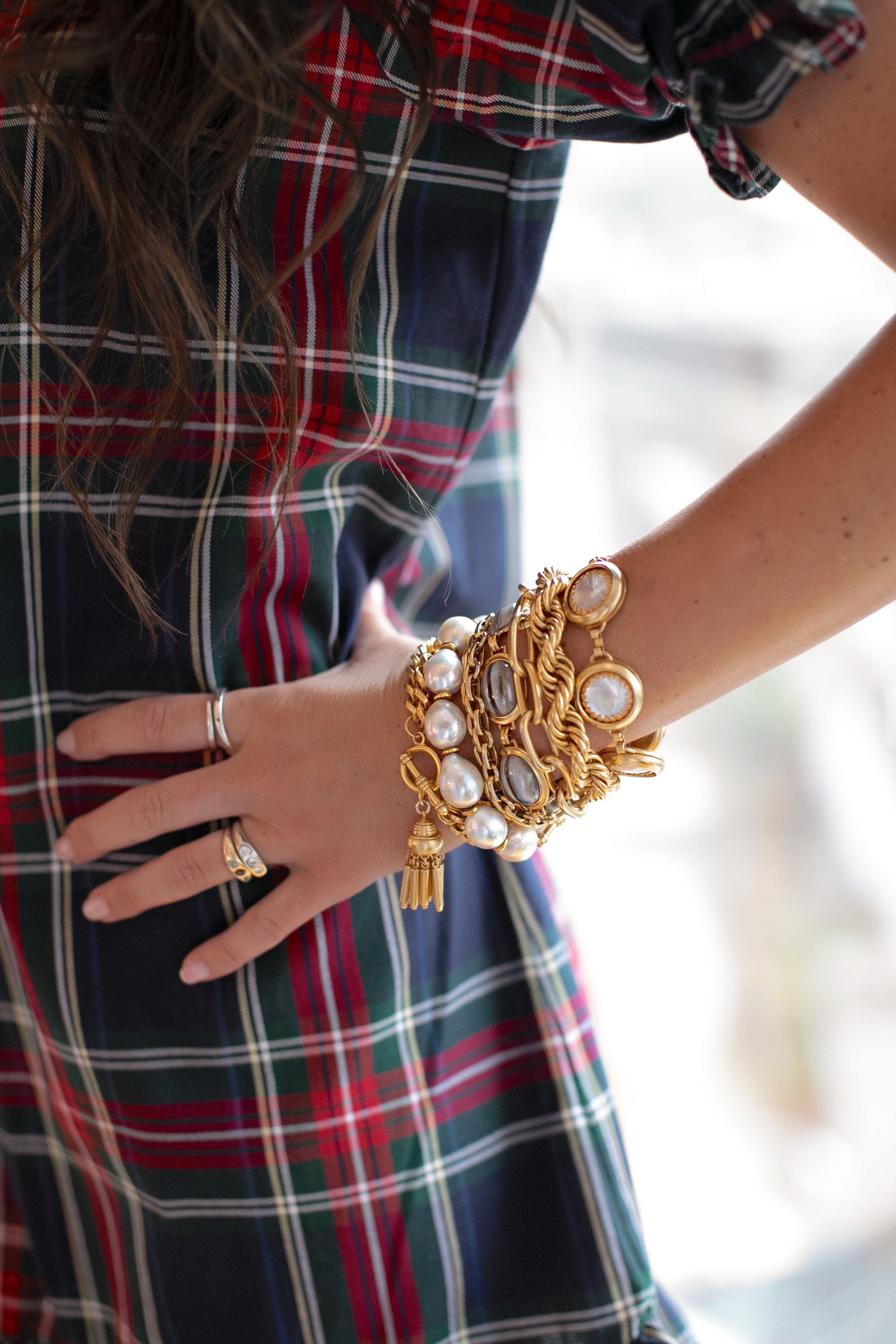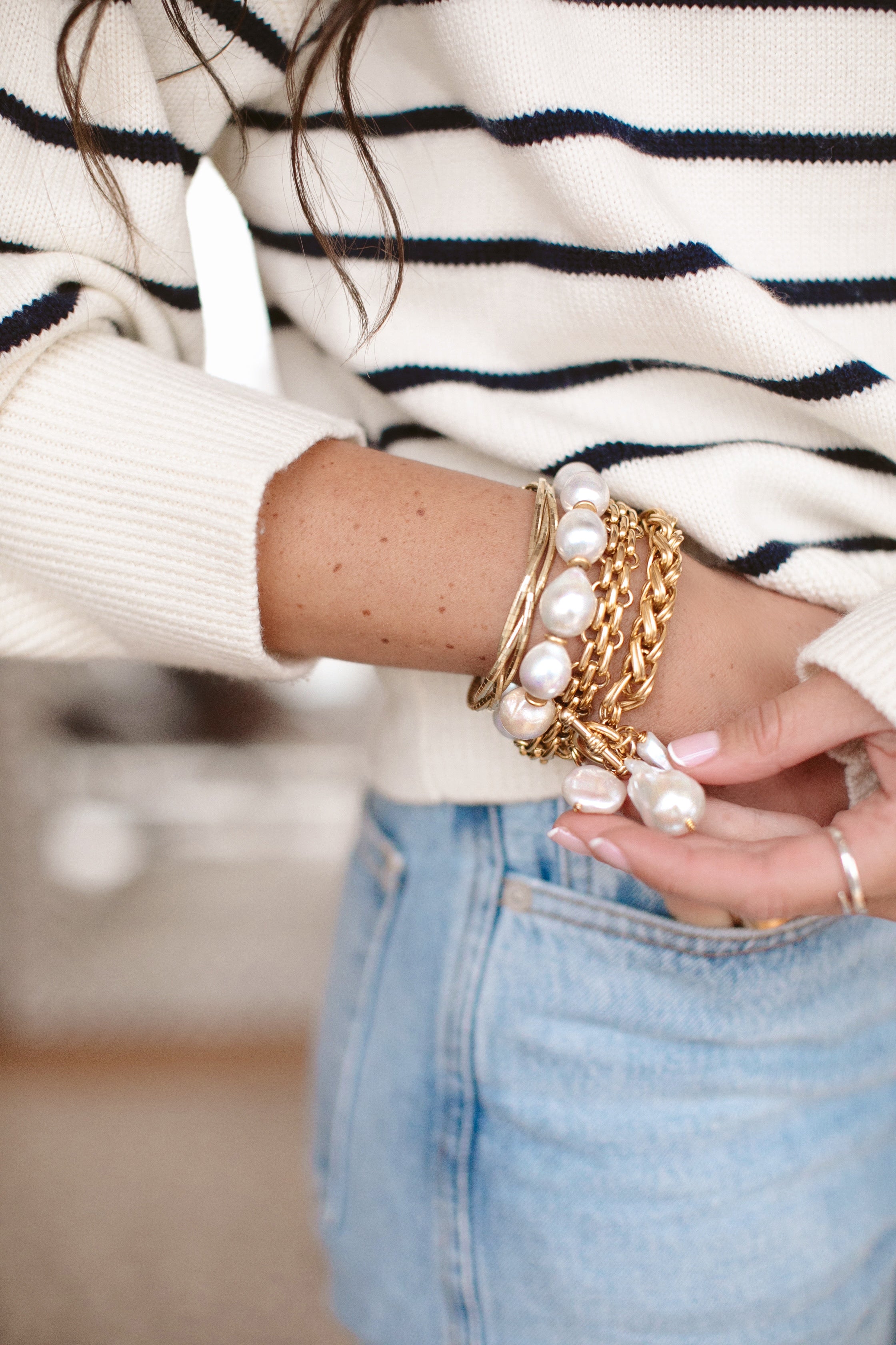 - A strand of baroque freshwater pearls and 24k antique gold plated slices