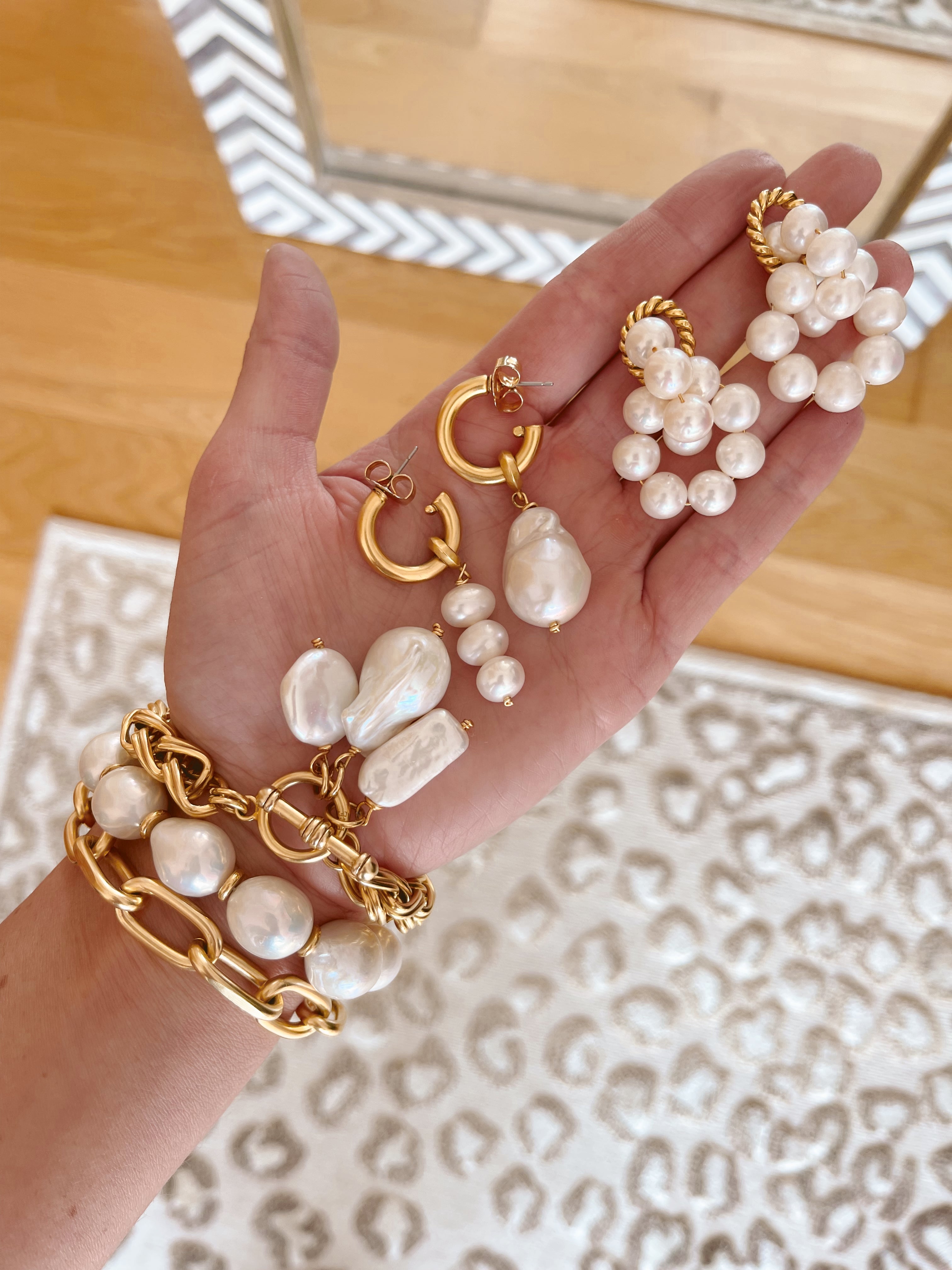 - Please note that no two pearls are exactly the same; they range slightly in color and size due to being natural materials. We think it adds to their beauty!