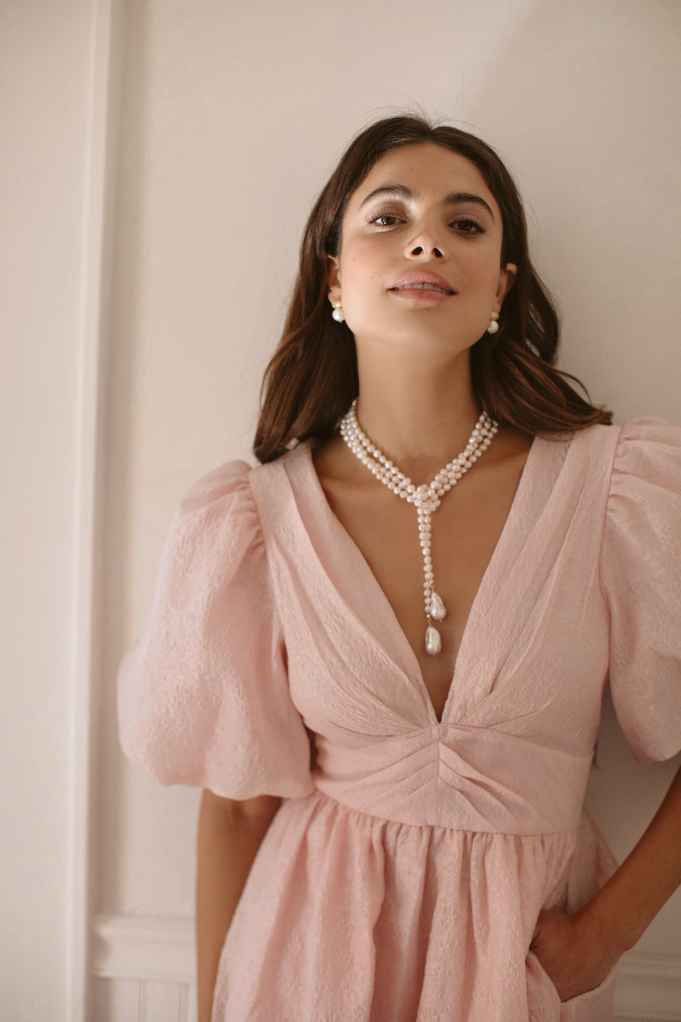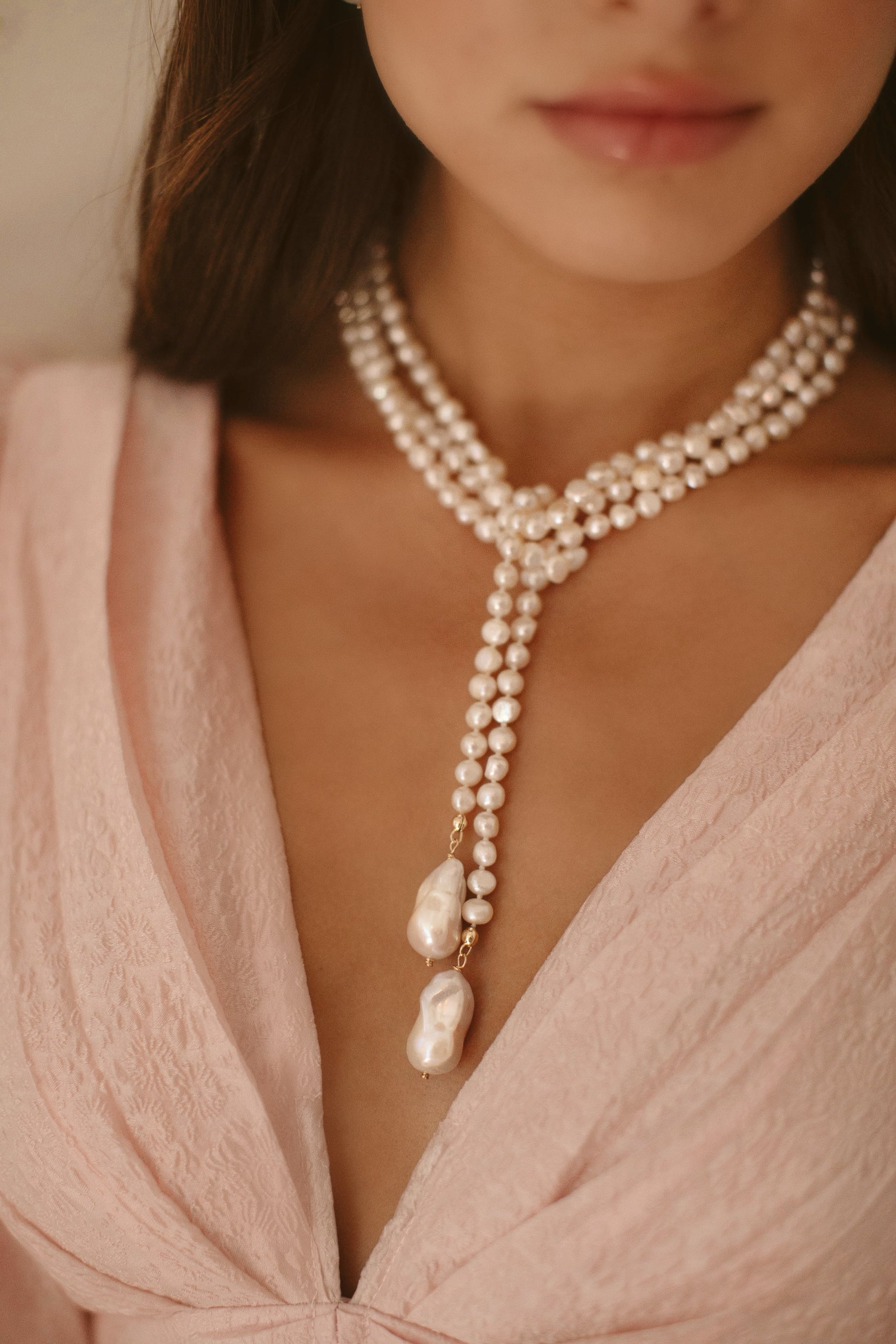 - This necklace is ~63" in length and can be worn as a lariat, knotted y-necklace or wrap necklace