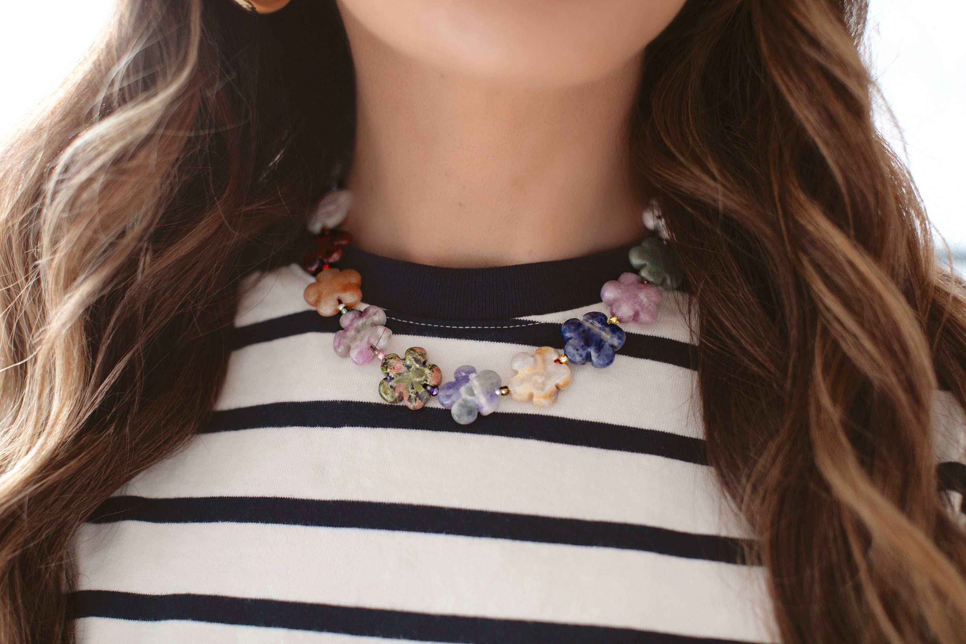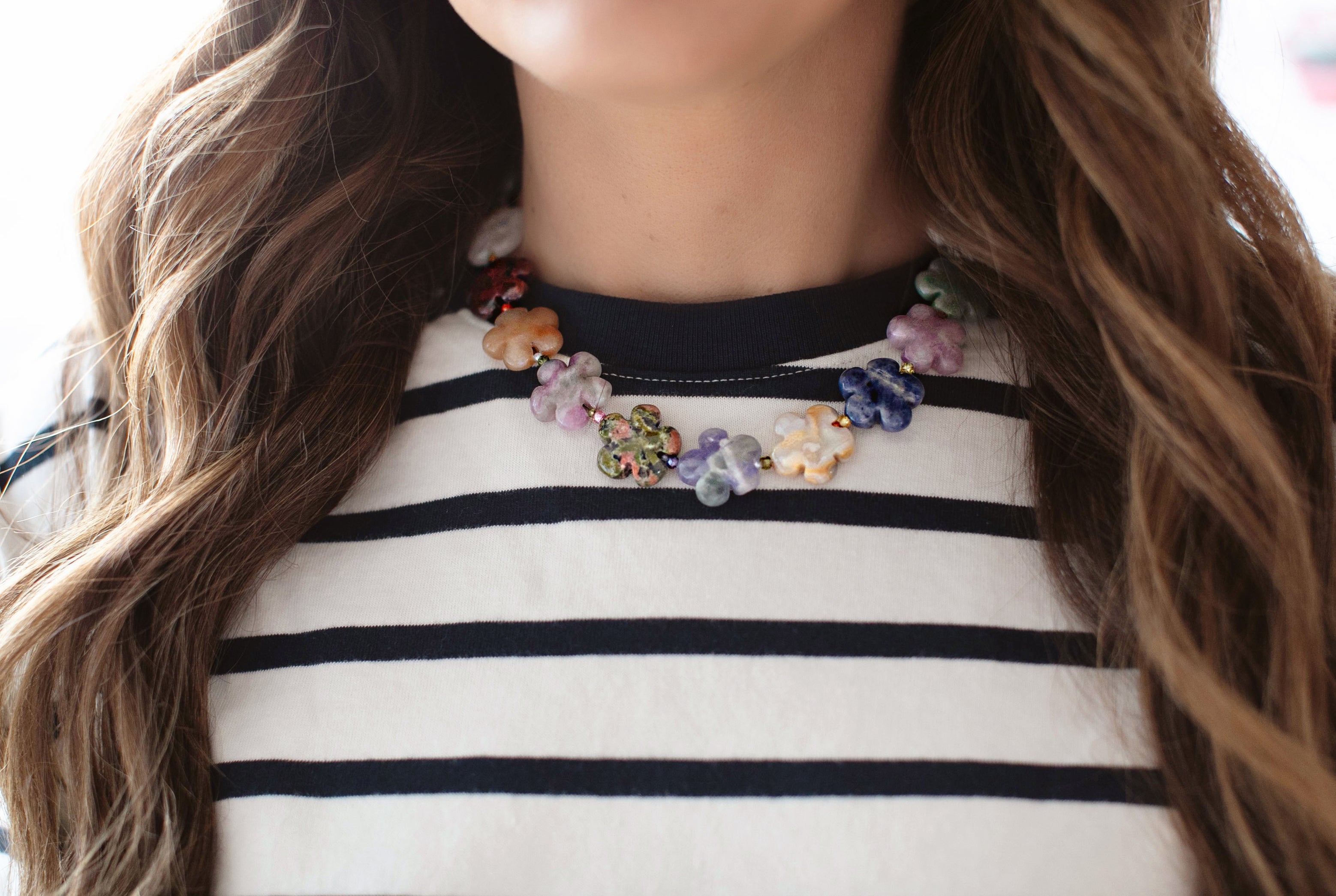 - Please note that no two gemstone flowers are exactly the same; they range slightly in color and detailing due to being natural materials. We think it adds to their beauty!