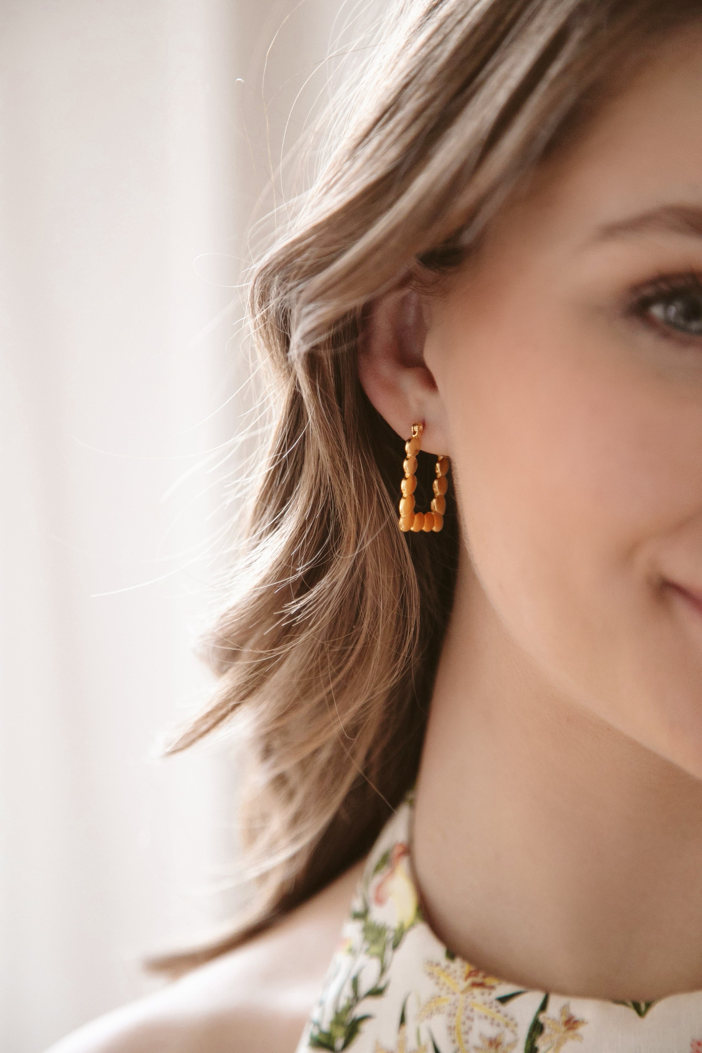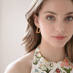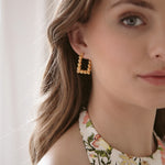 - 24k antique gold plated rectangular dotwork click hoops on stainless steel hypoallergenic posts
