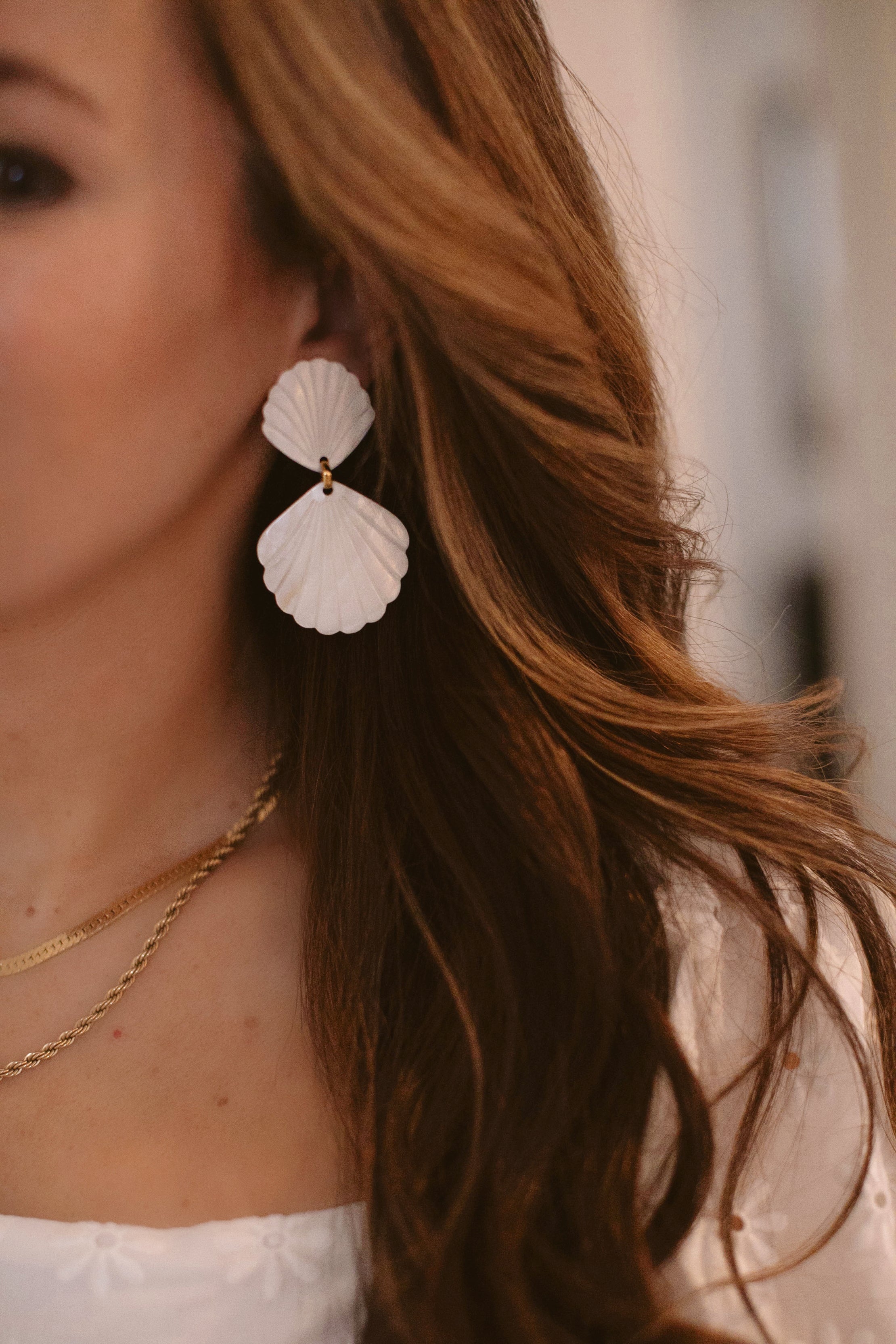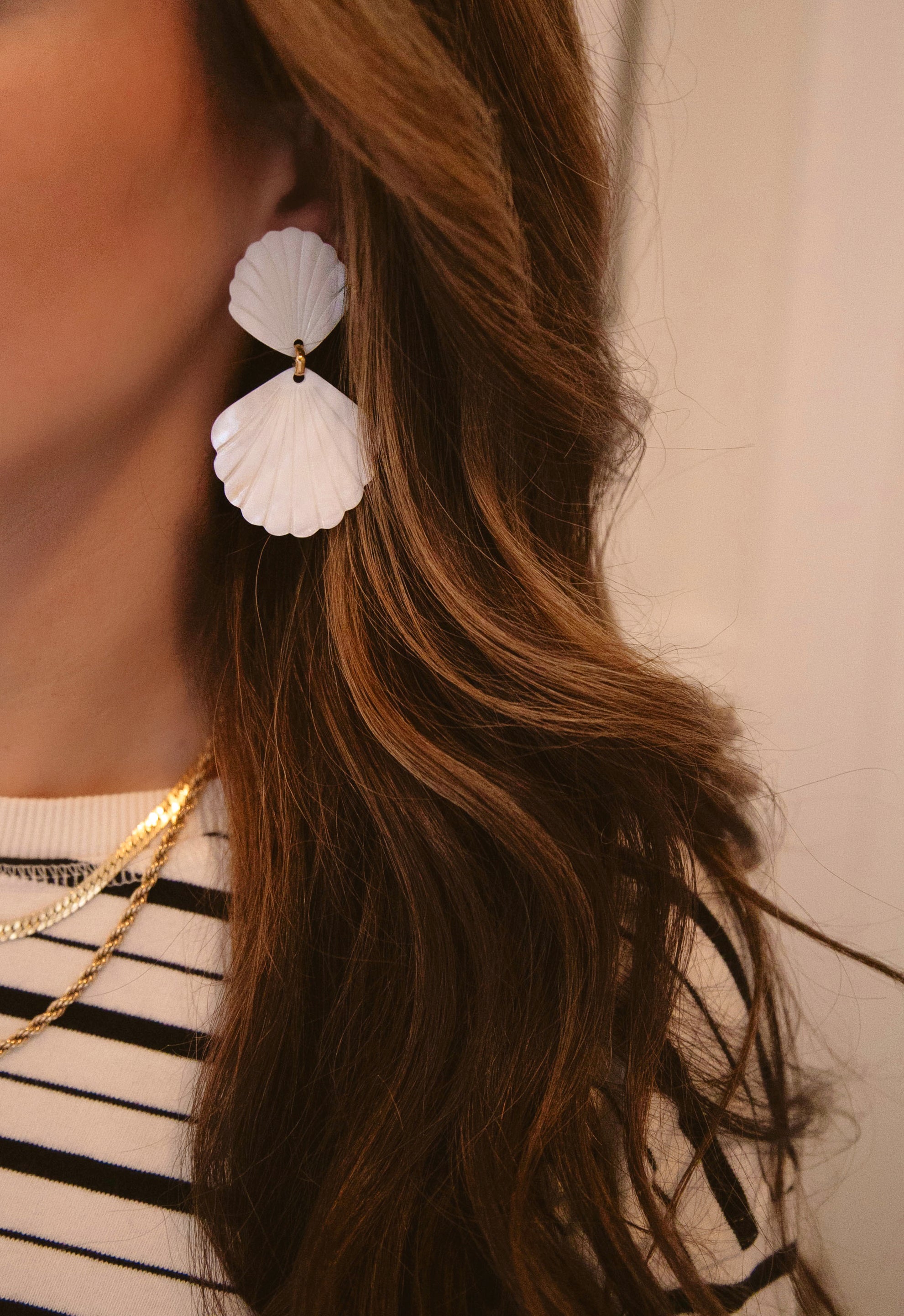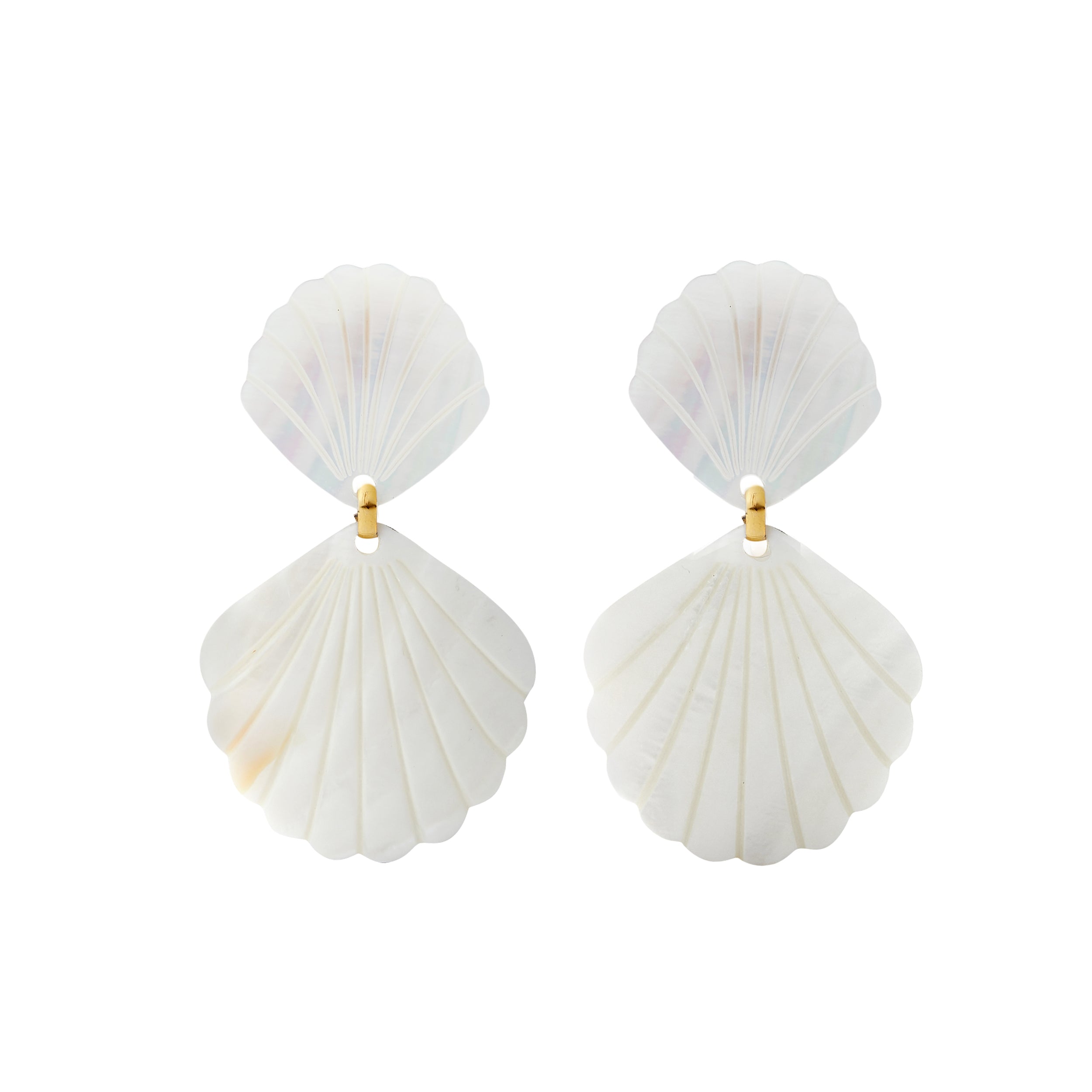 - MOP shells hang from smaller MOP shell toppers on gold plated hypoallergenic posts