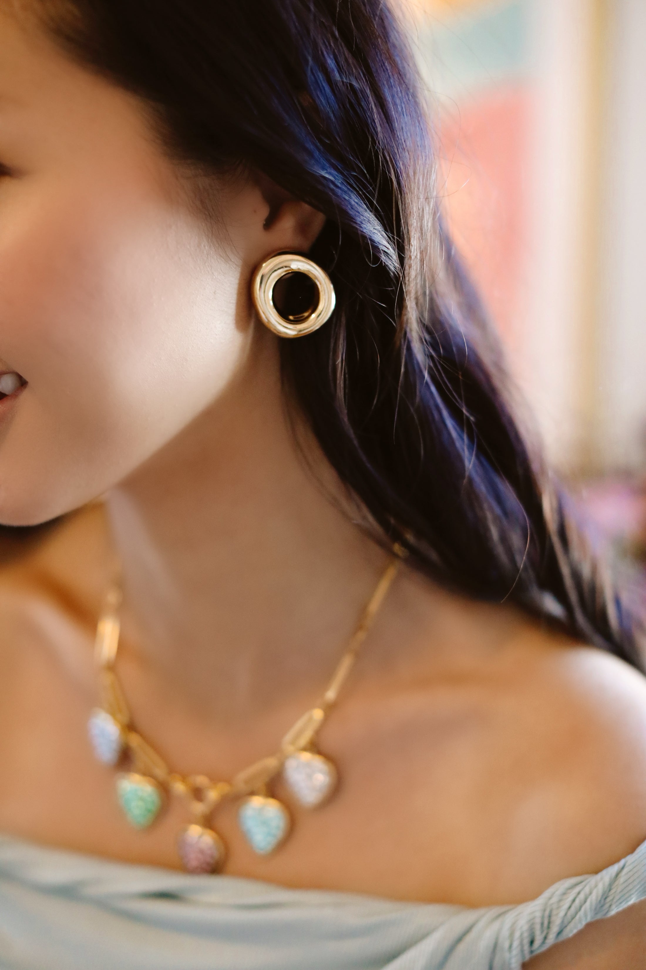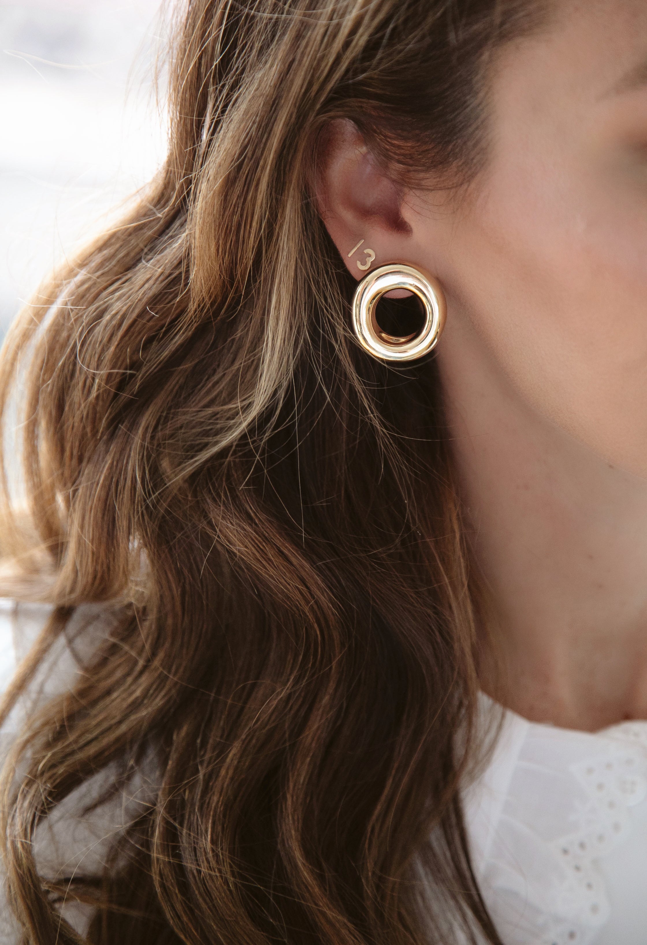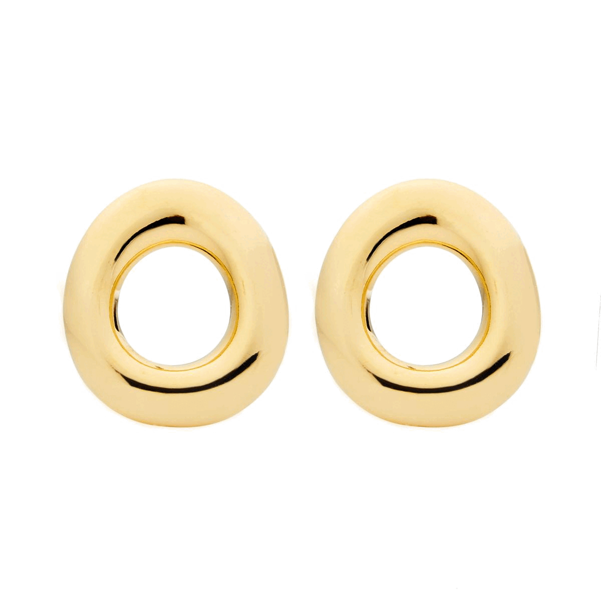 - 24k gold plated or rhodium plated irregular circle hoops on stainless steel hypoallergenic posts