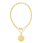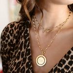 - 24k antique gold plated necklace and spinner pendant featuring the adage -