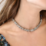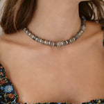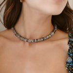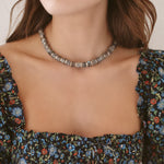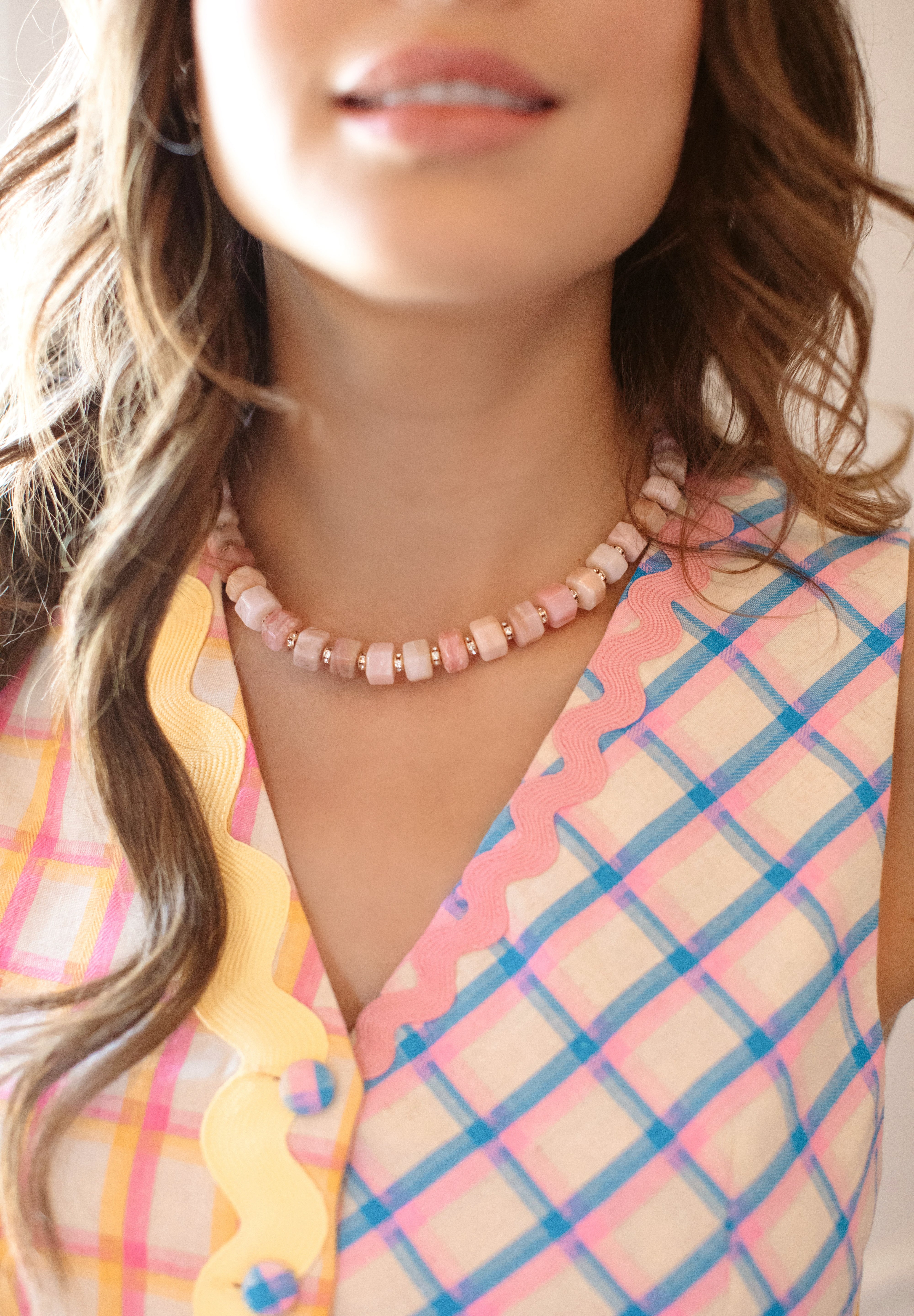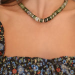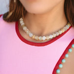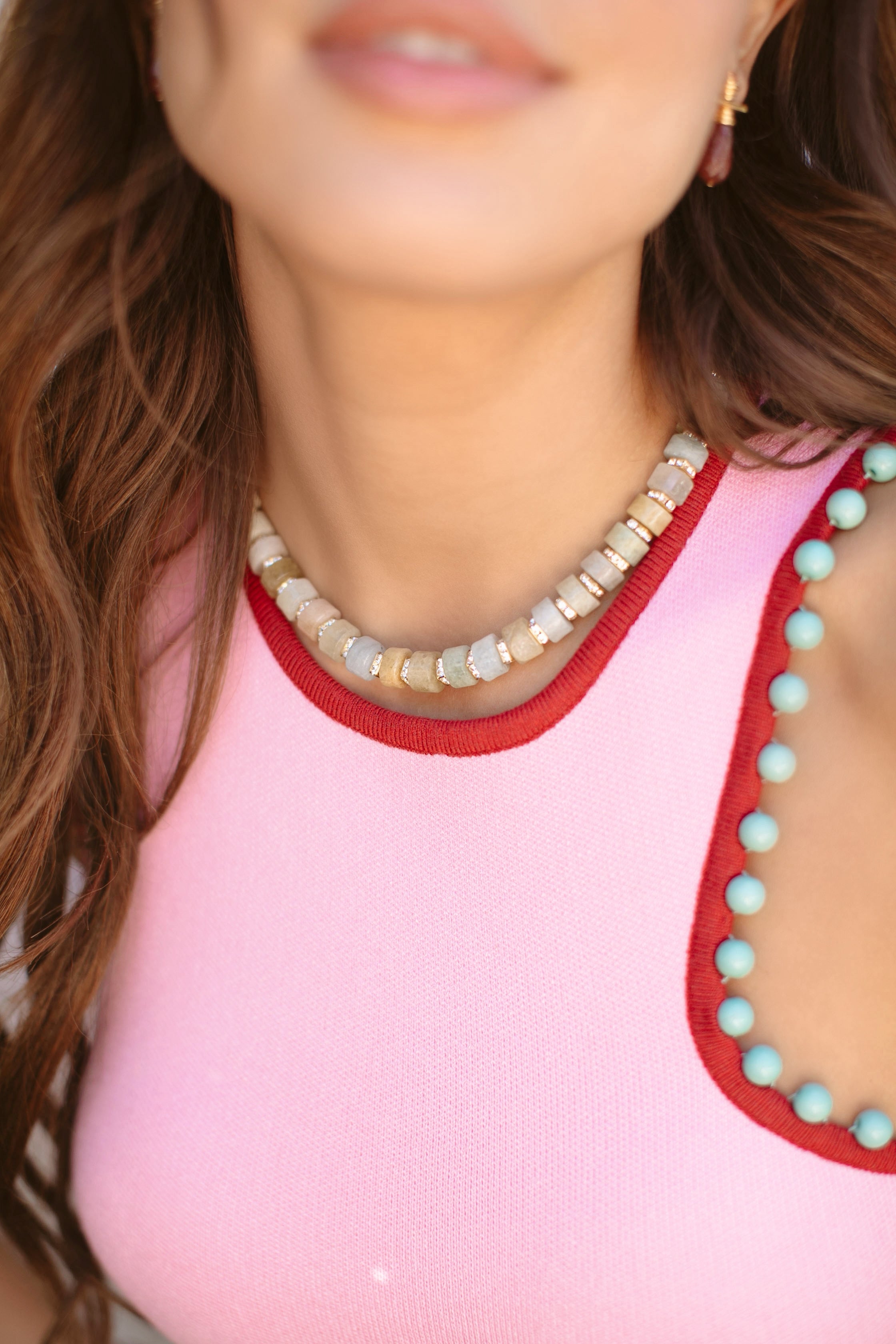 - A strand of semi-precious gemstone wheel beads and crystal rondelle spacers