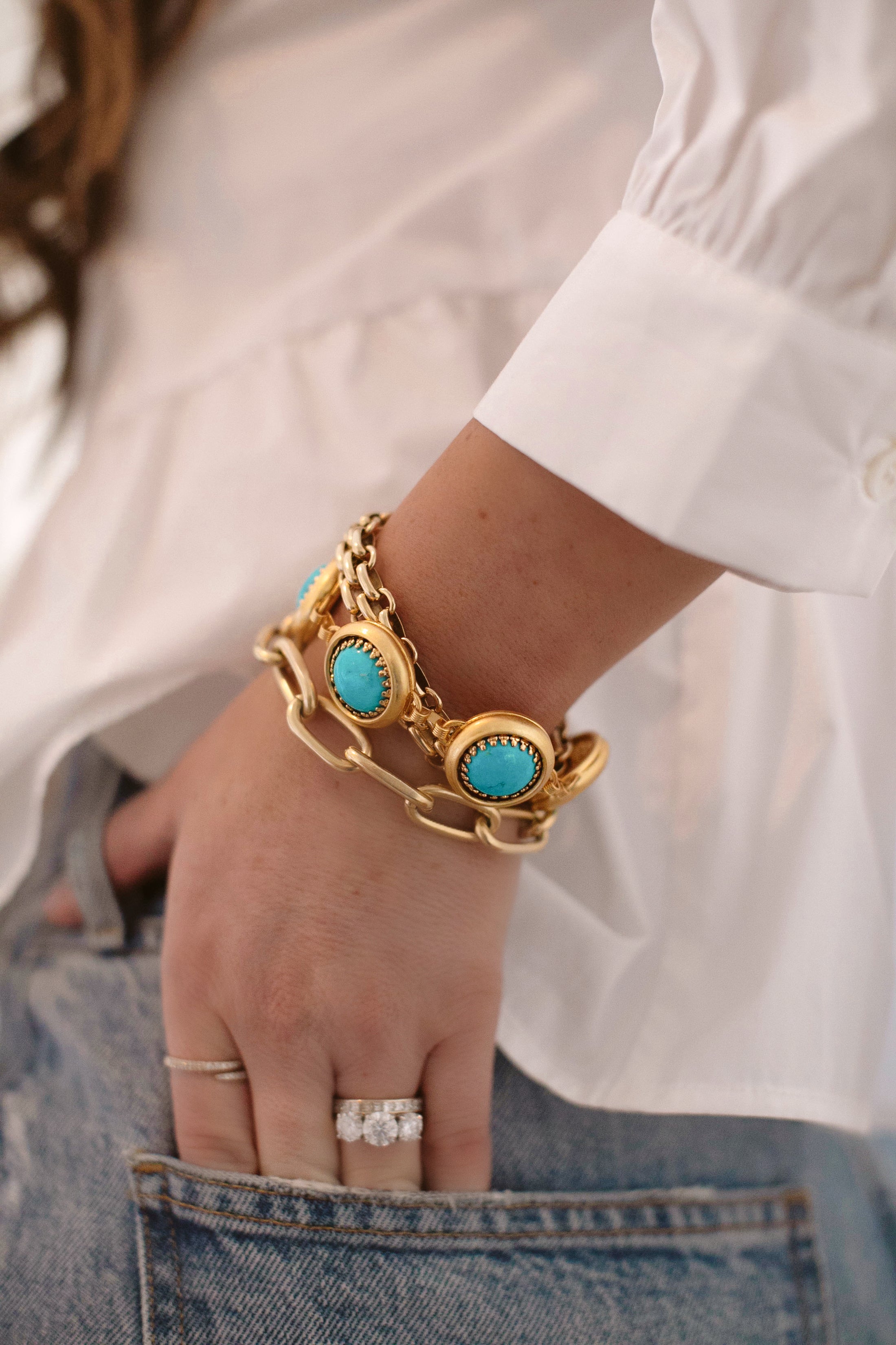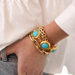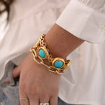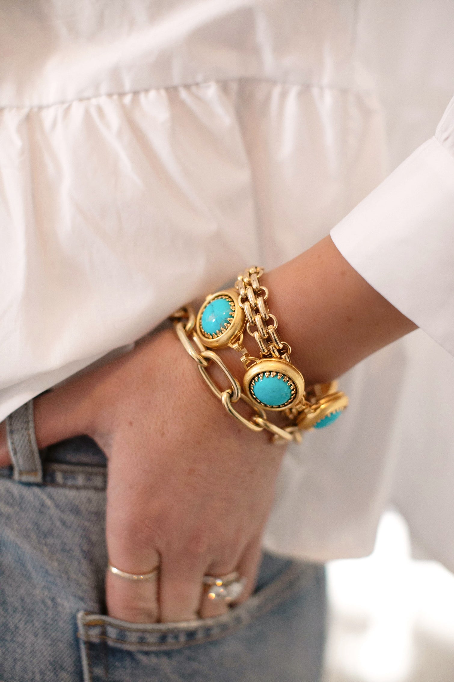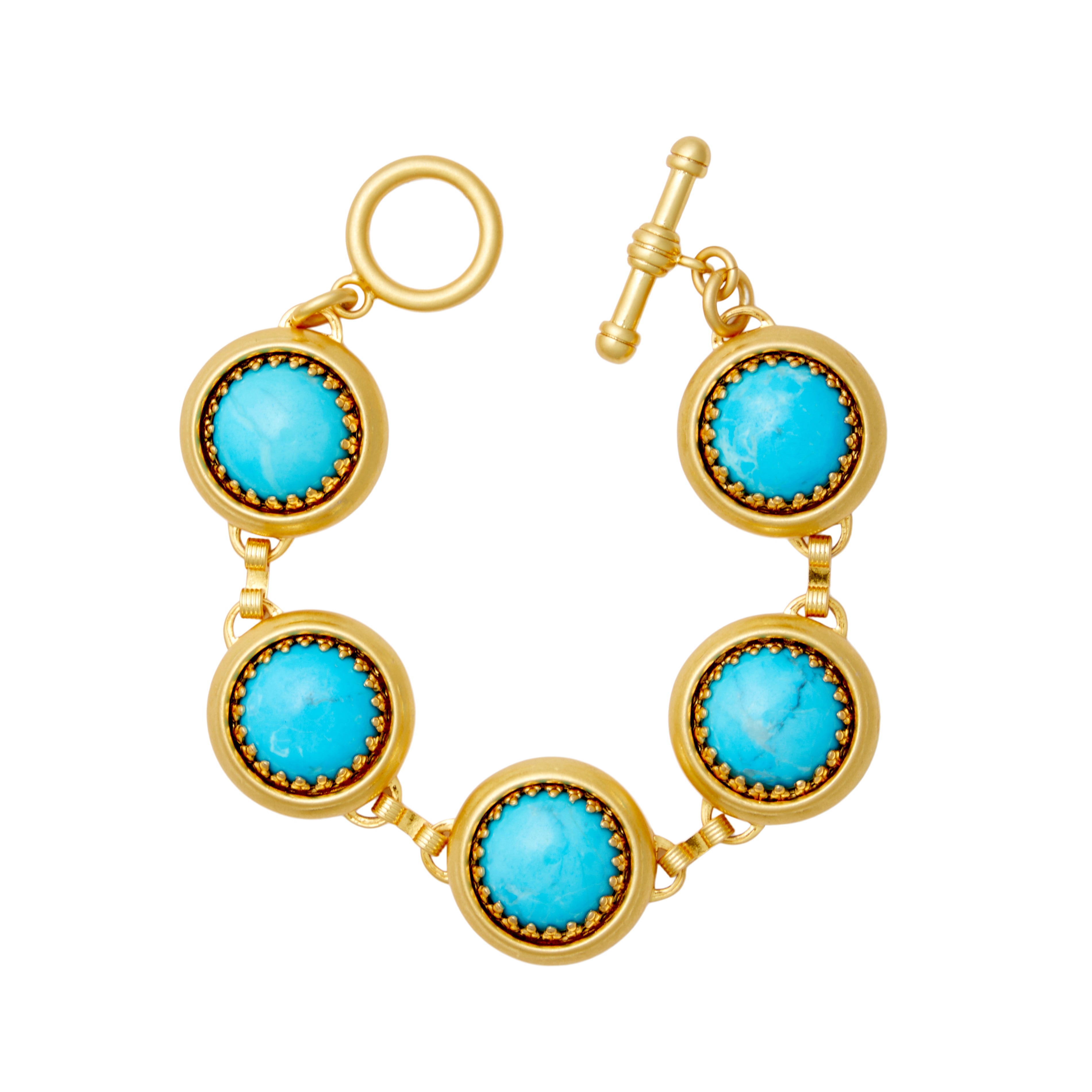 - Turquoise cabochons on 24k antique gold plated brass settings
