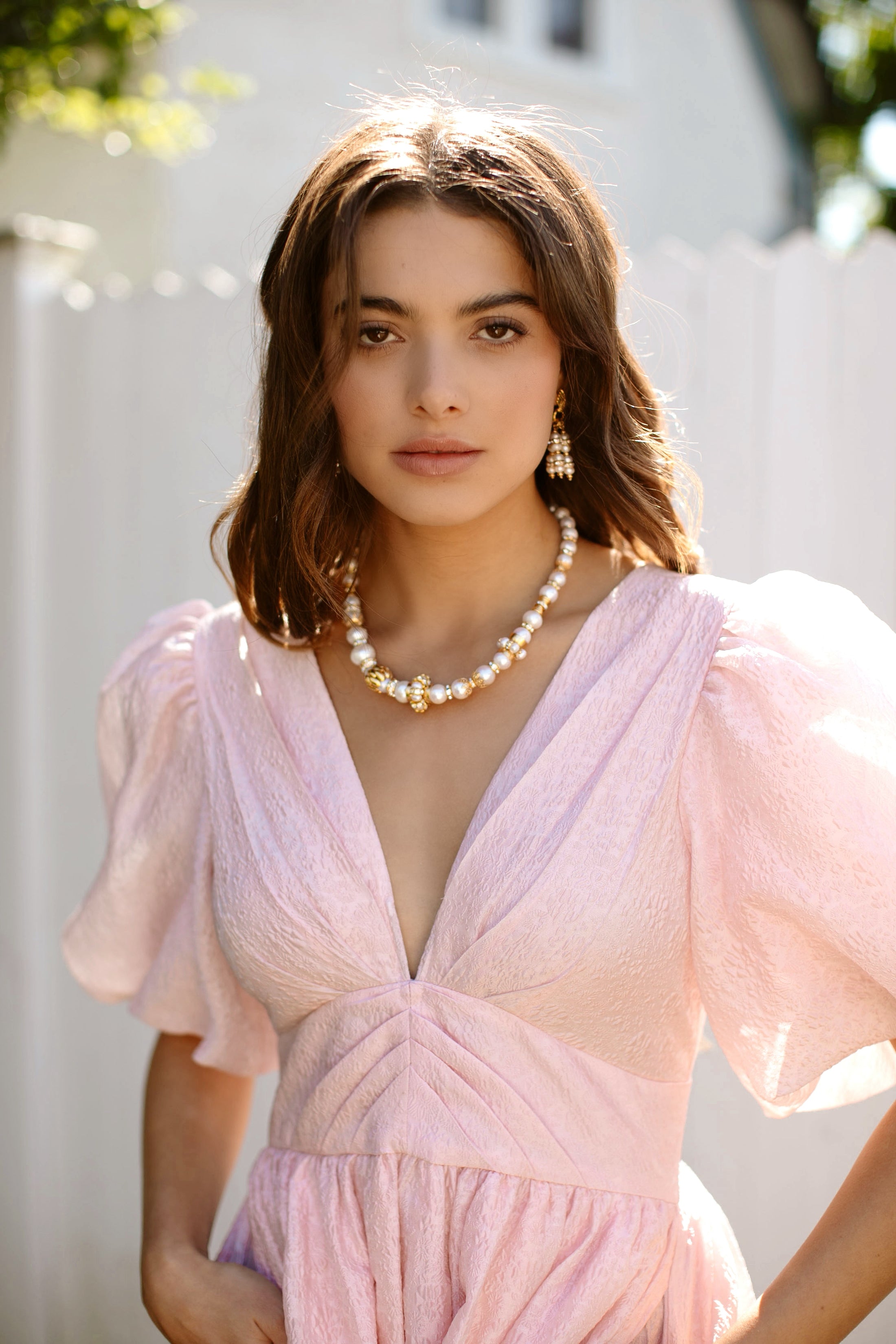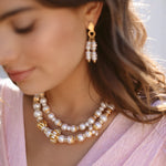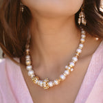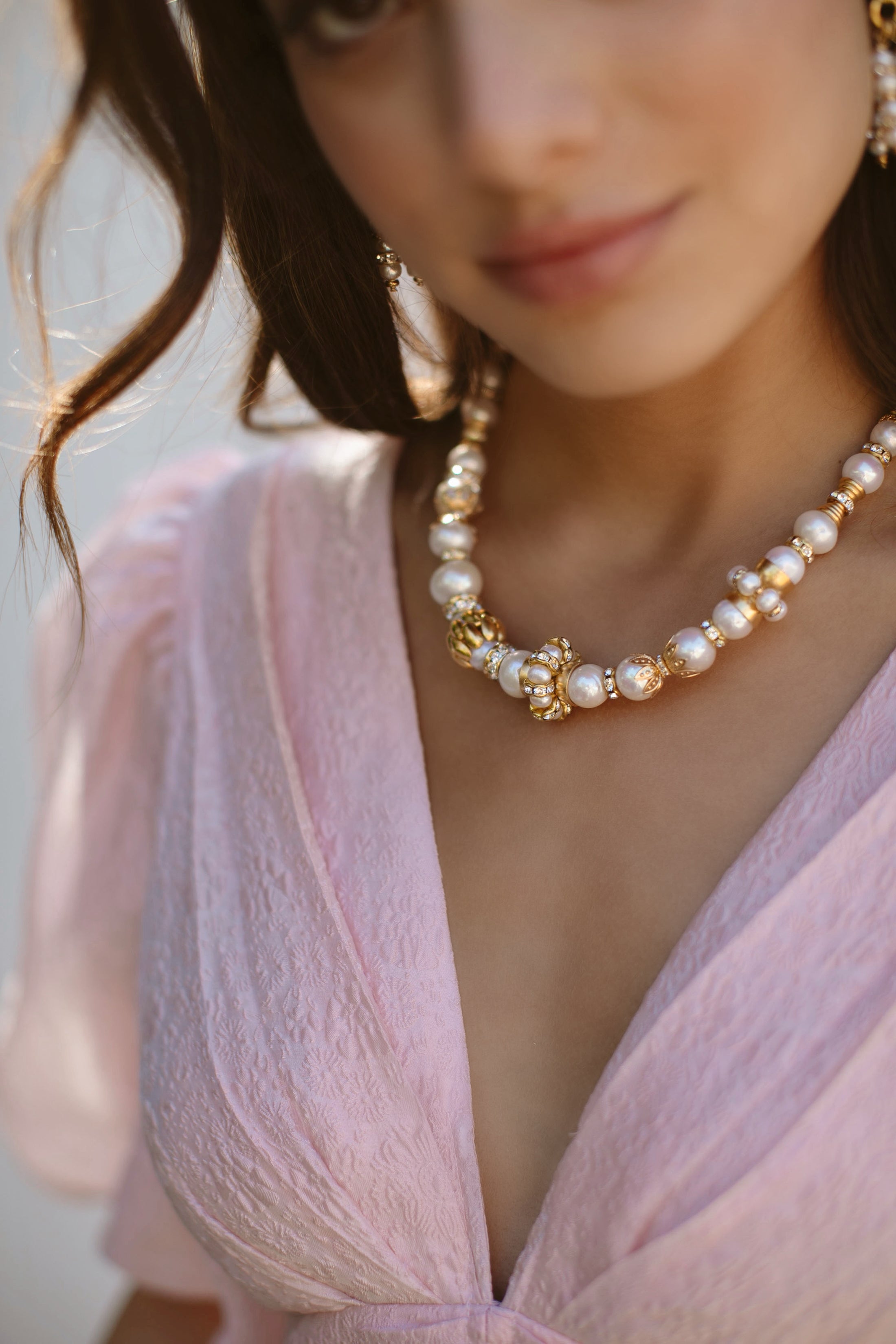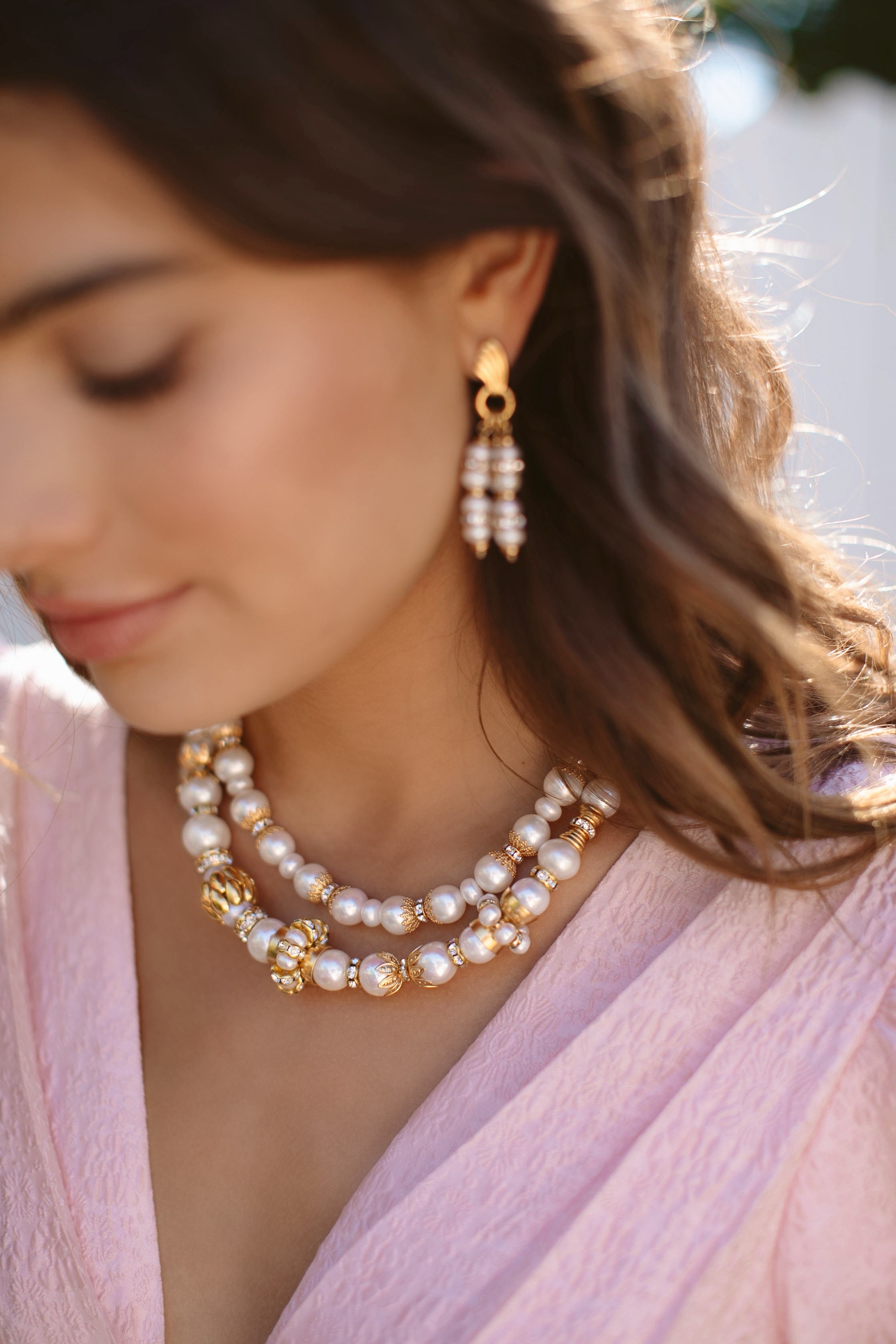 - A strand of graduated freshwater pearls with 24k antique gold brass and crystal rondelle spacers