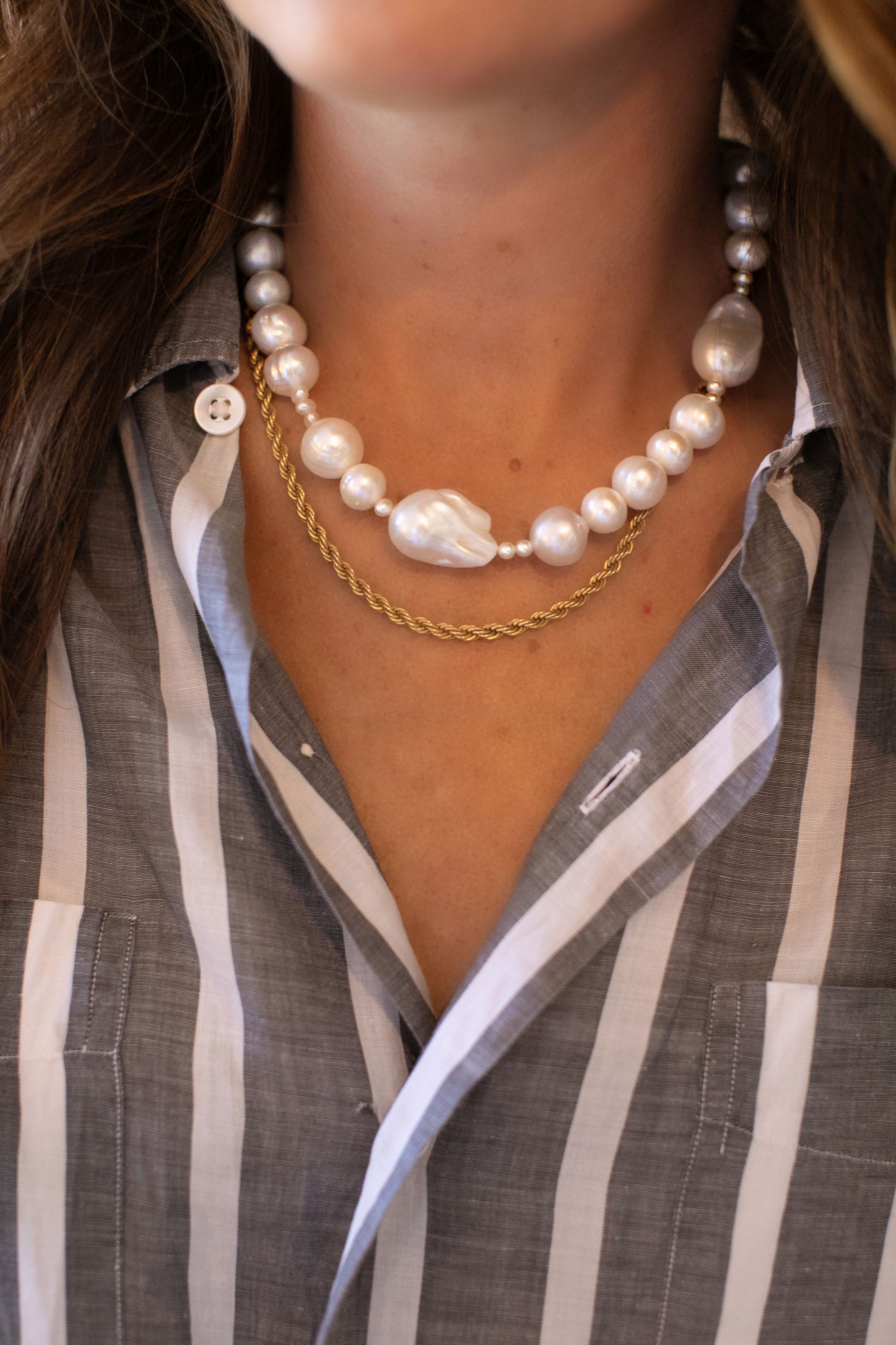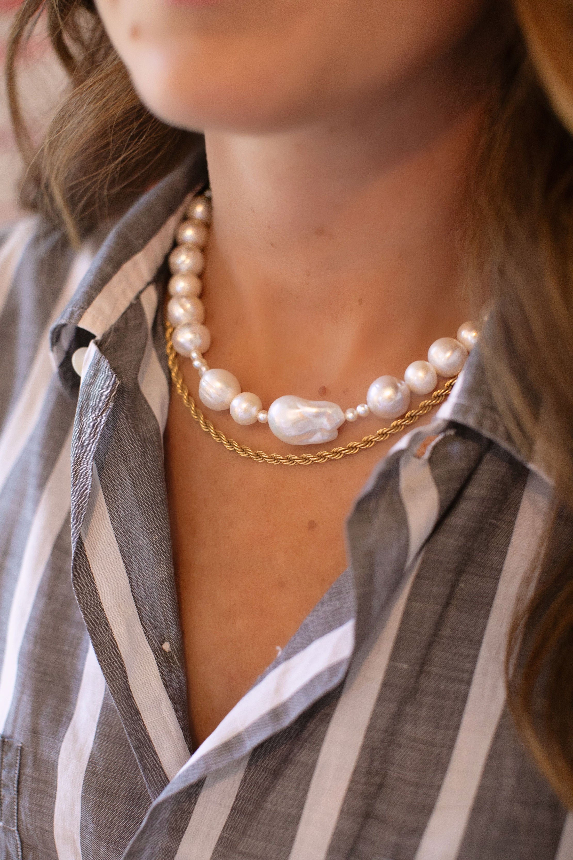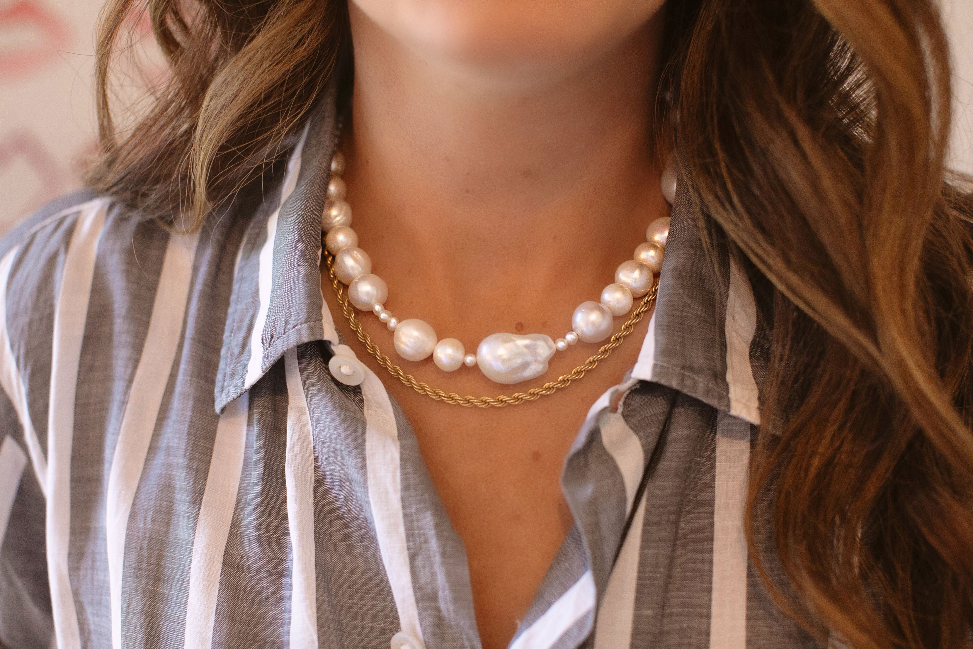 - A strand of freshwater and baroque pearls in a variety of sizes