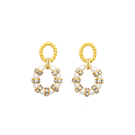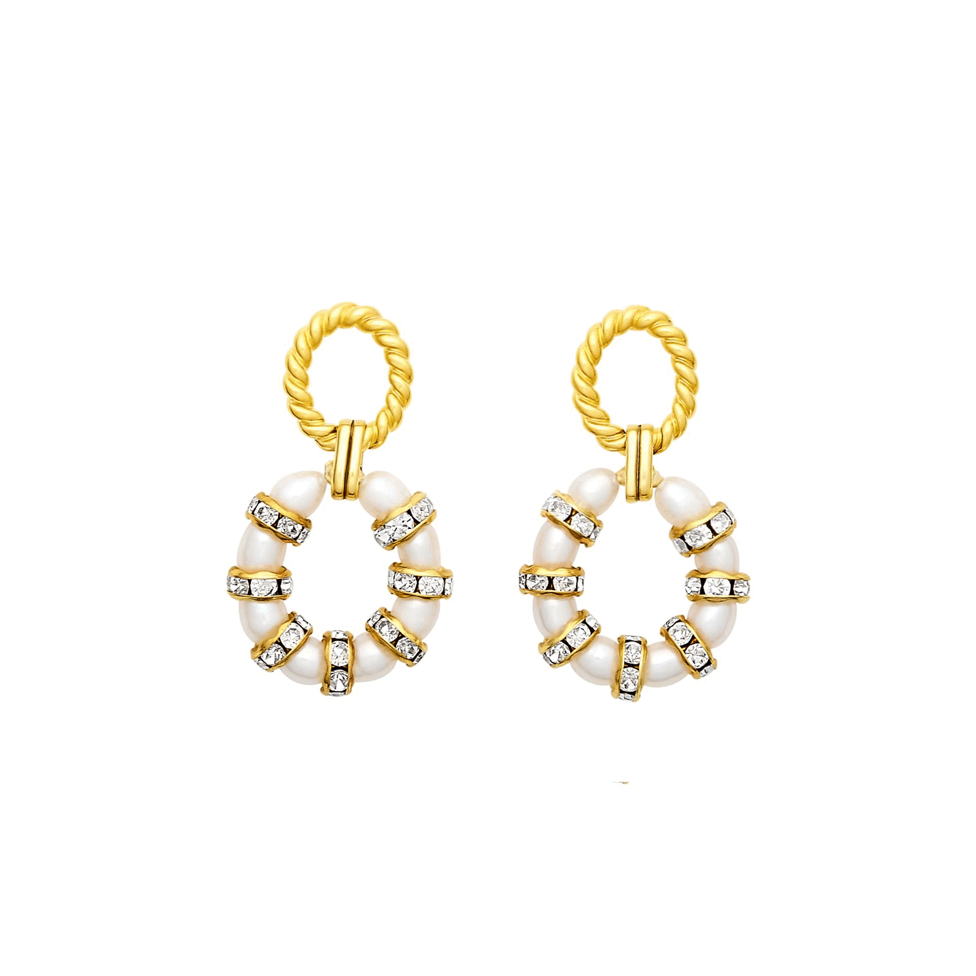 - A hoop of alternating freshwater pearls and Swarovski rondelles hang from 24k antique gold plated twisted cable toppers on stainless steel hypoallergenic posts