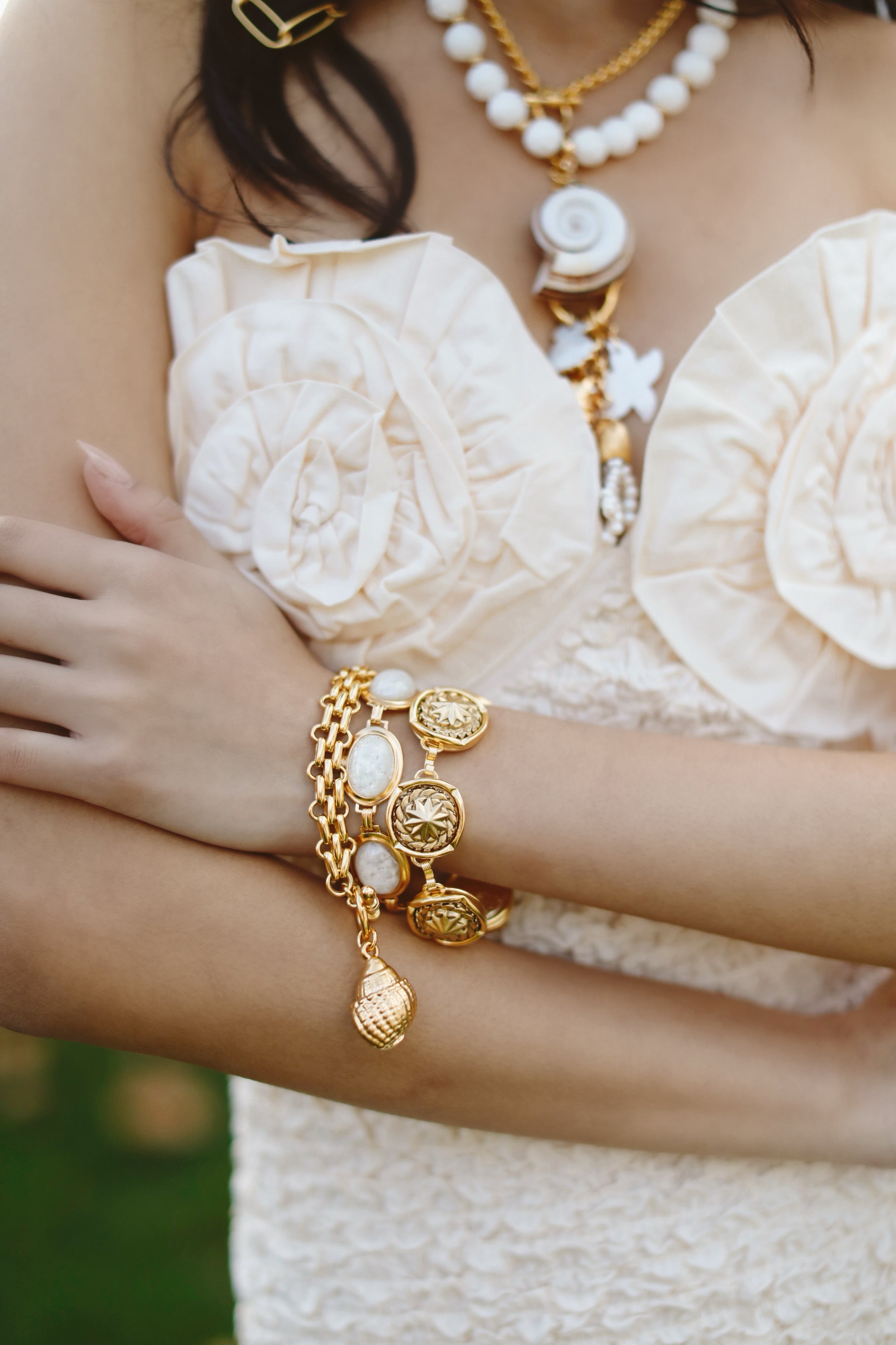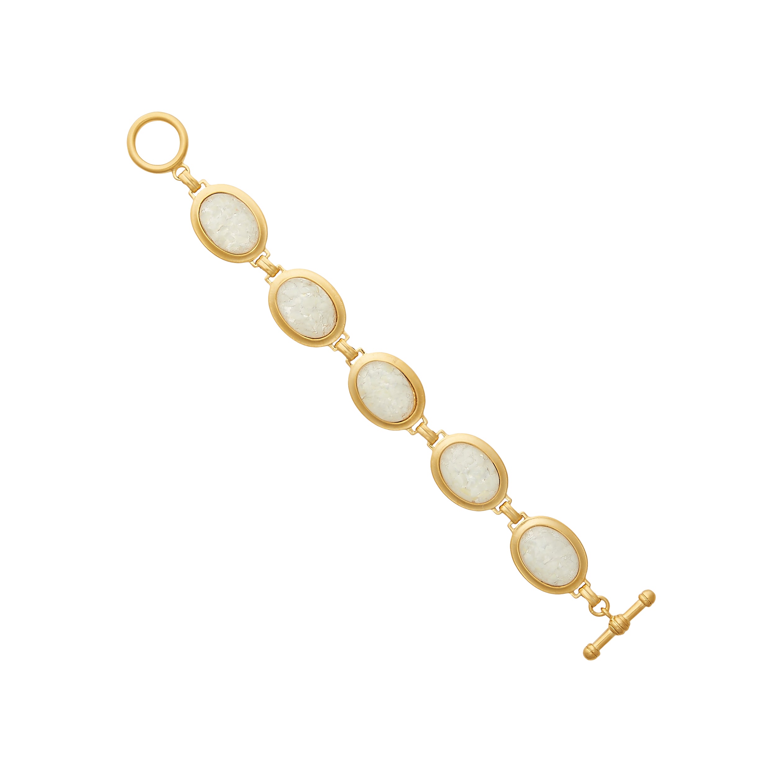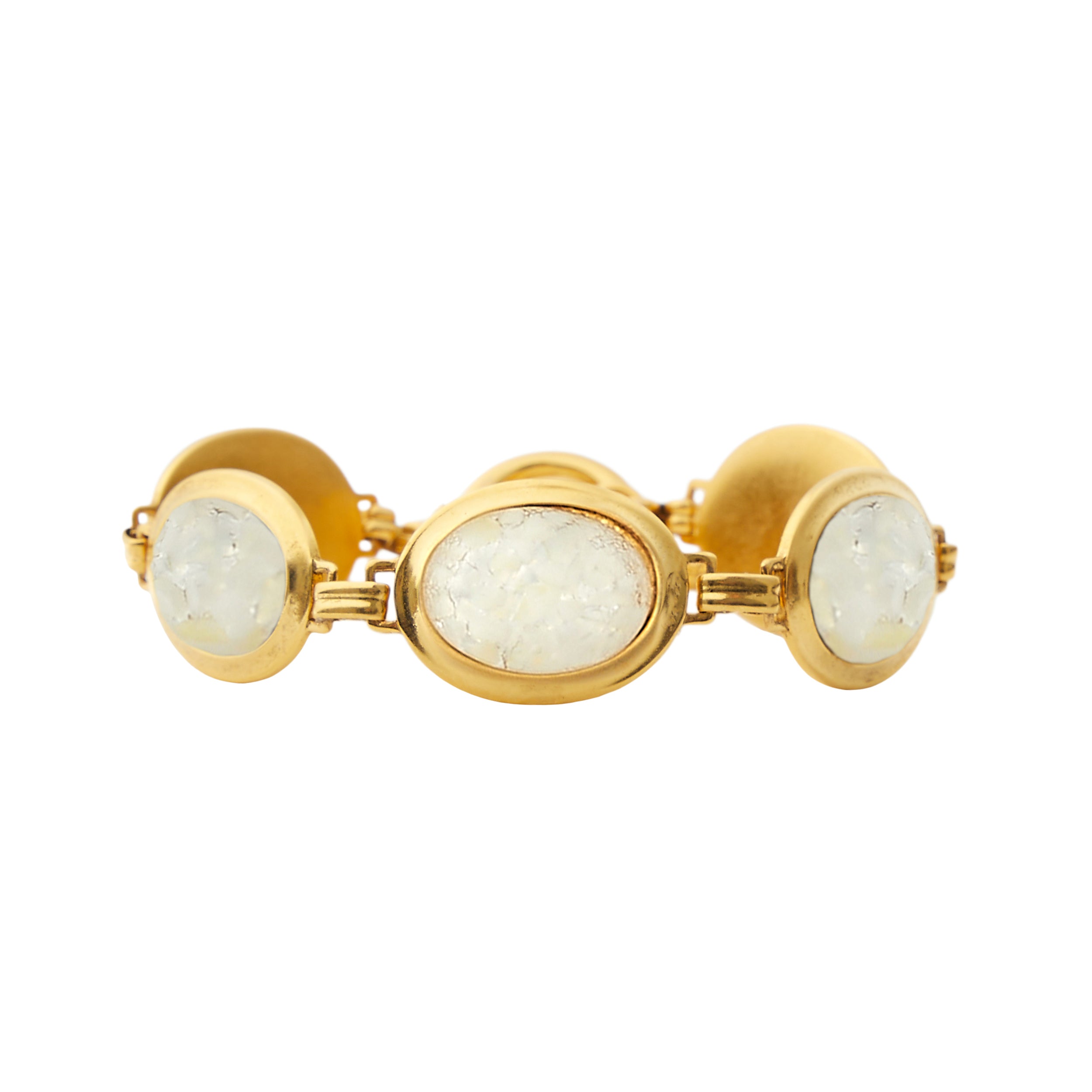 - White Opal glass cabochons on 24k antique gold plated brass settings