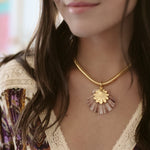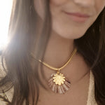 - A baby flat scallop adorned with a 24k antique gold plated shell slides on a same plated snake chain