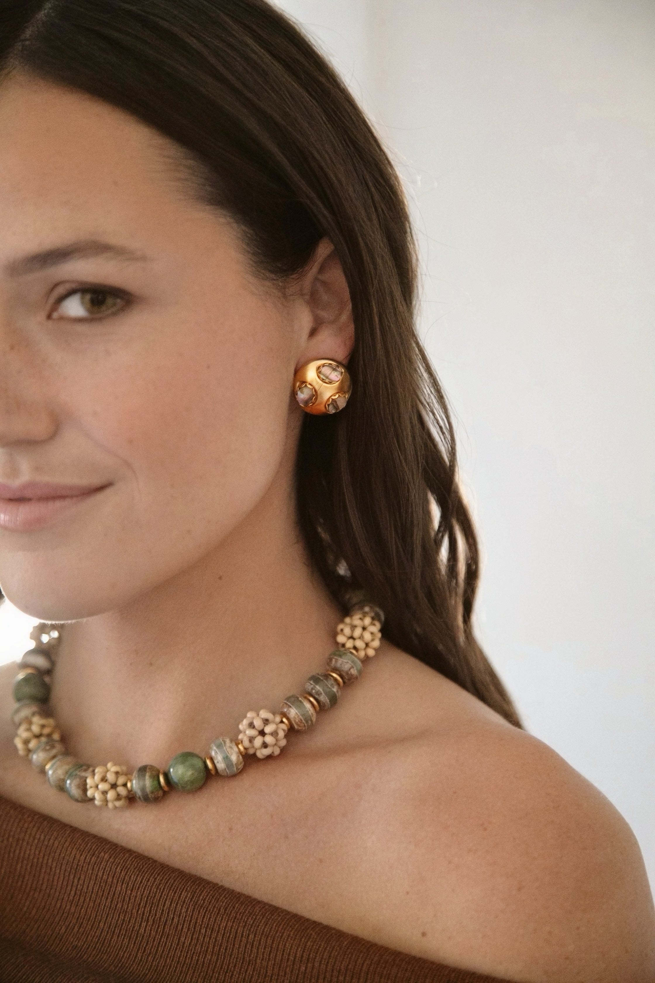 - Please note that no two semi-precious gemstones or natural shell pieces are exactly the same; they range slightly in color, size and detailing due to being natural materials. We think it adds to their beauty!