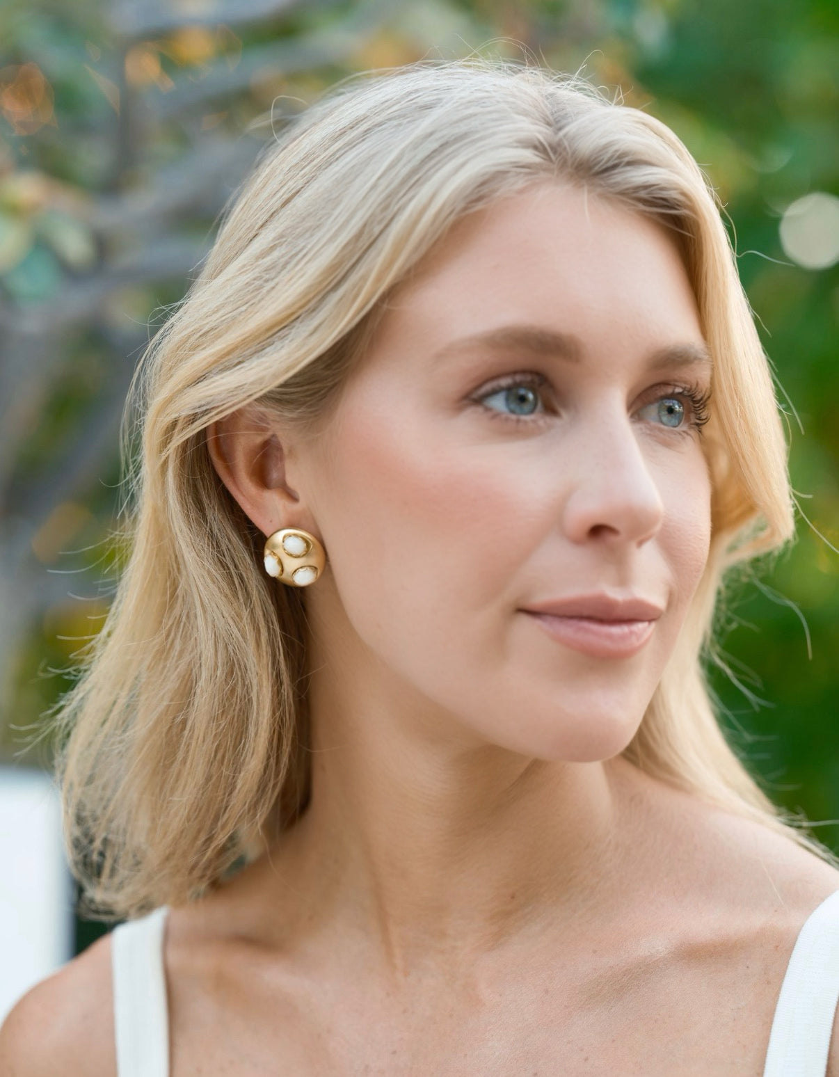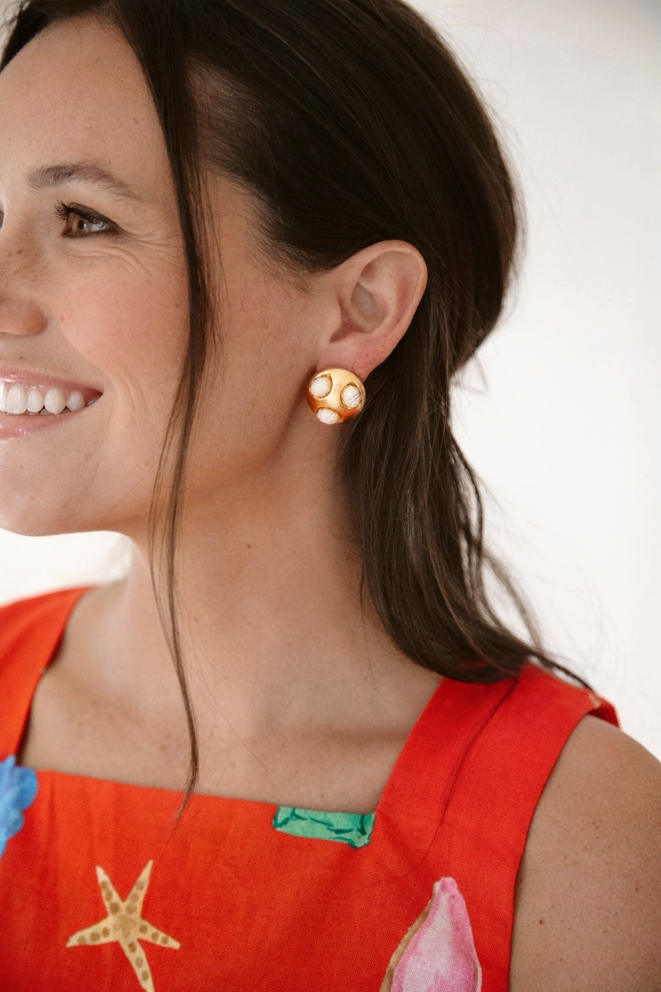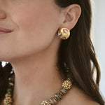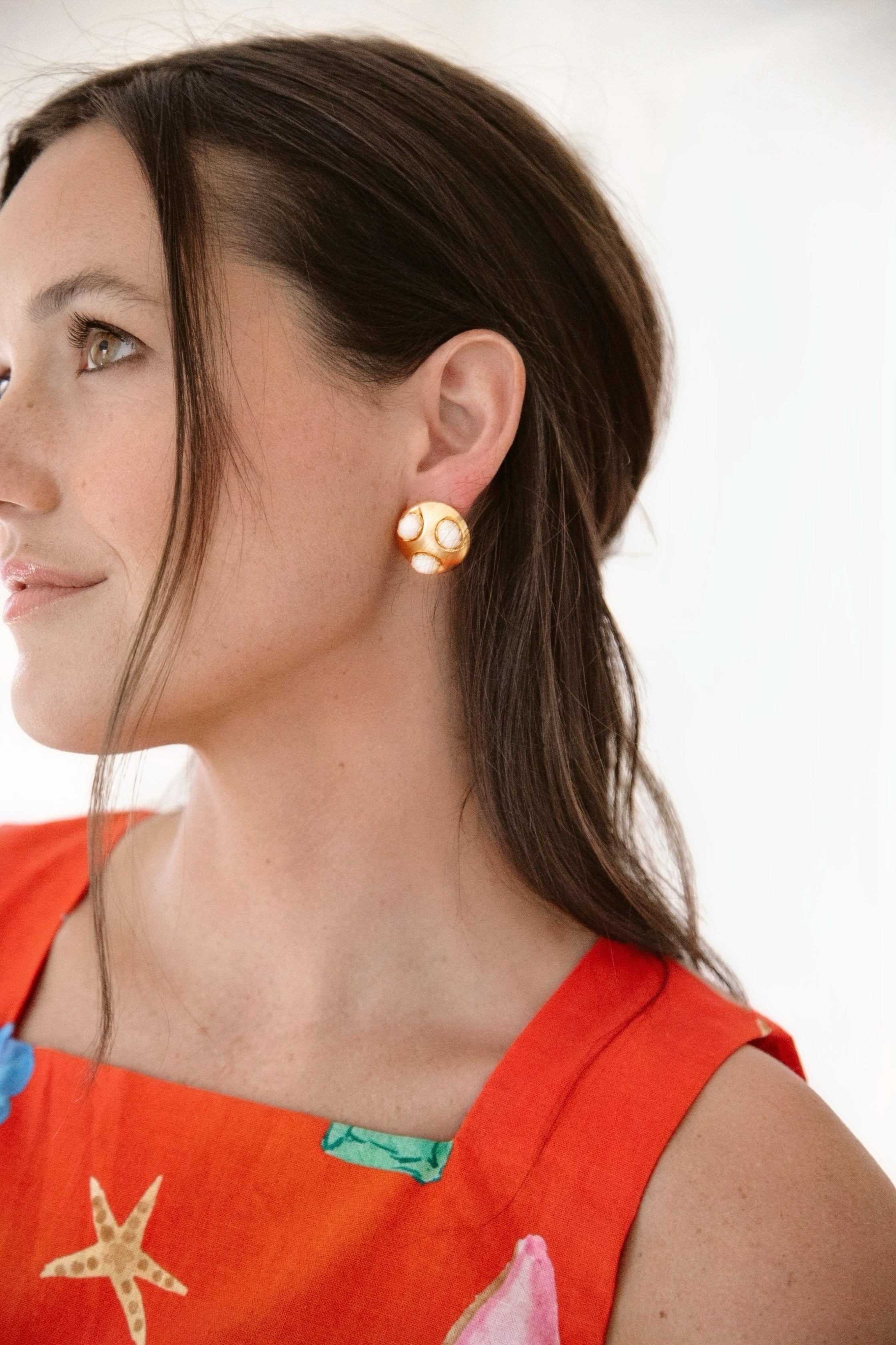 - Three abalone or vintage ivory starburst cabochons are set in 24k antique gold plated button studs on stainless steel hypoallergenic posts