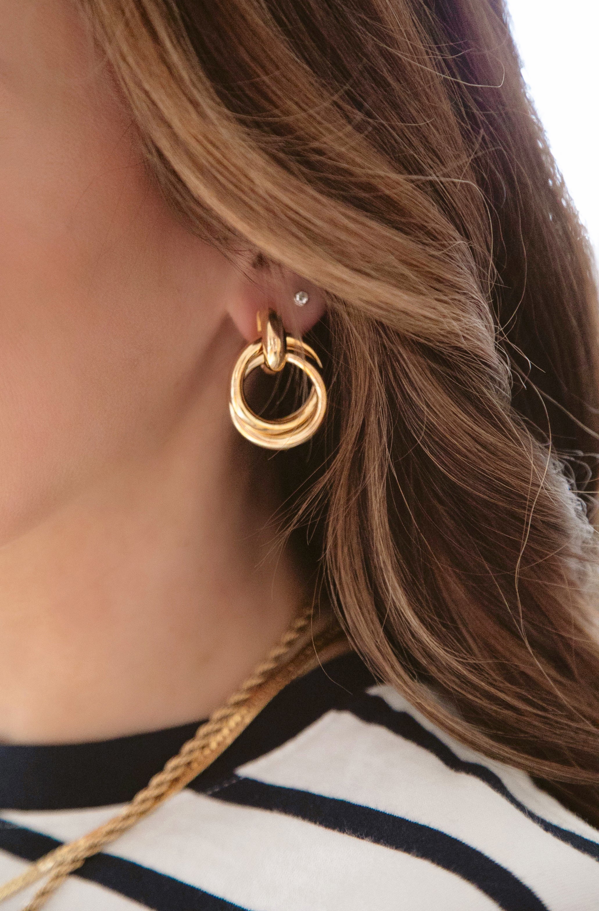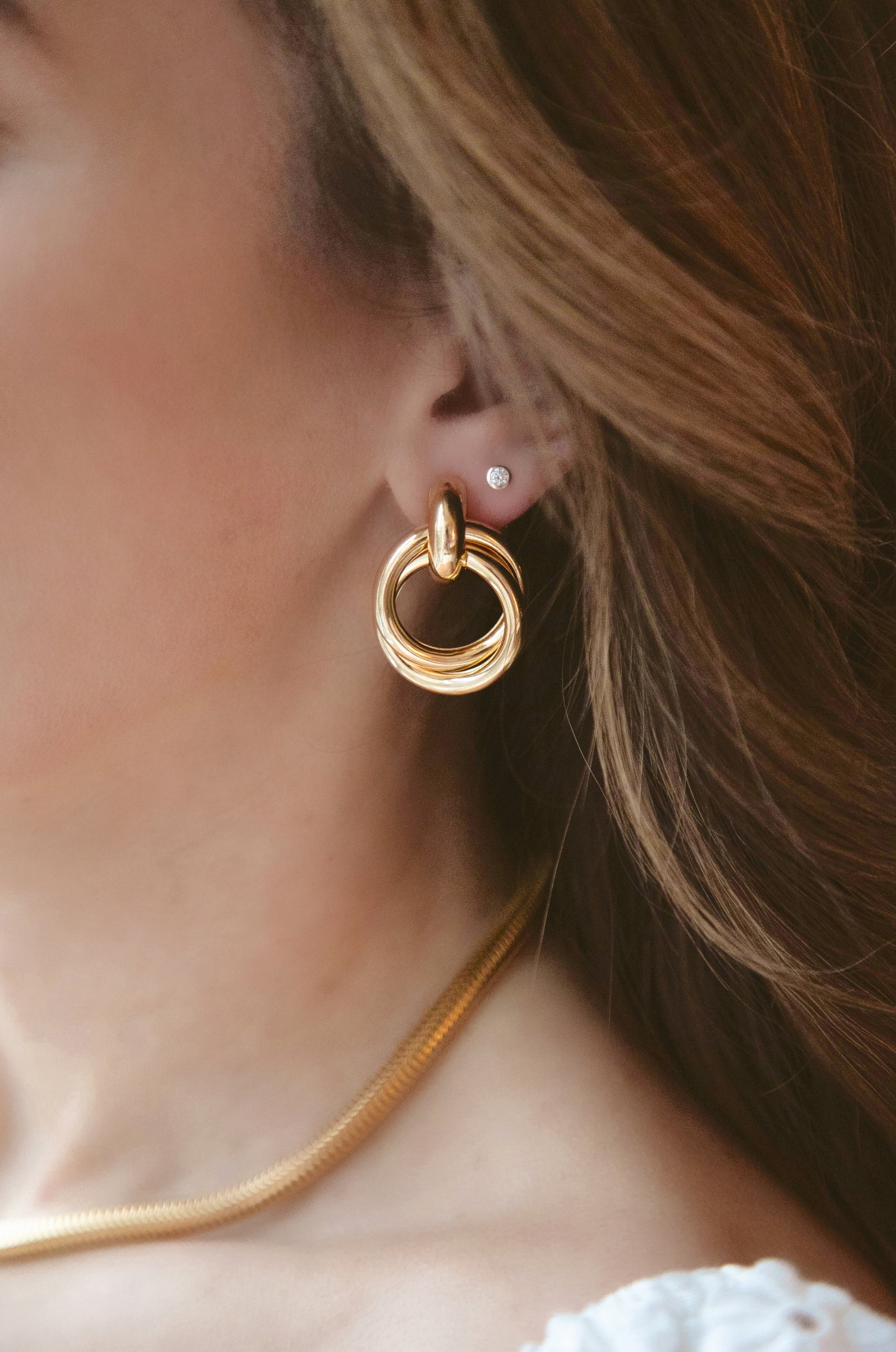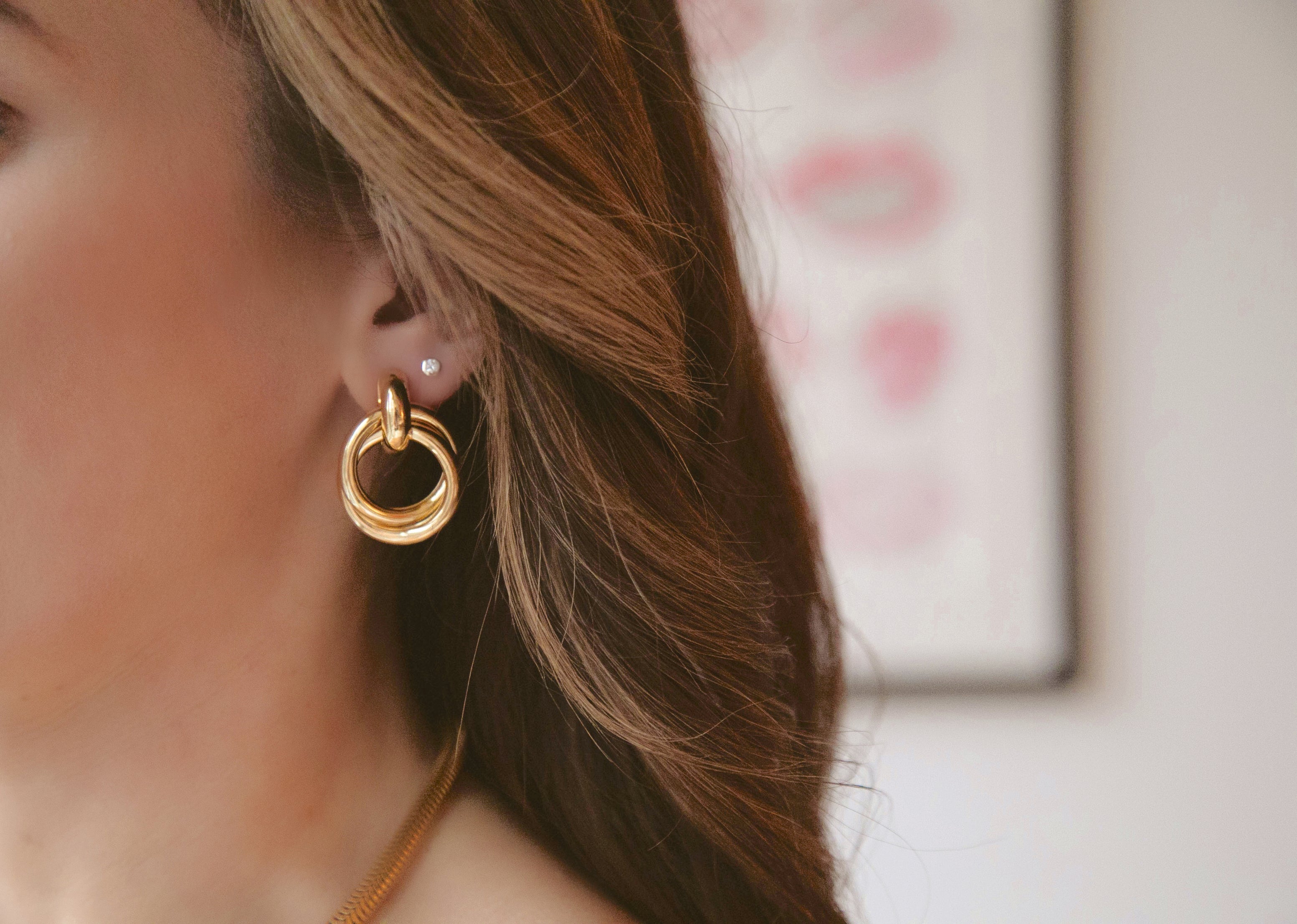 - 24k gold plated rings and toppers on stainless steel hypoallergenic posts