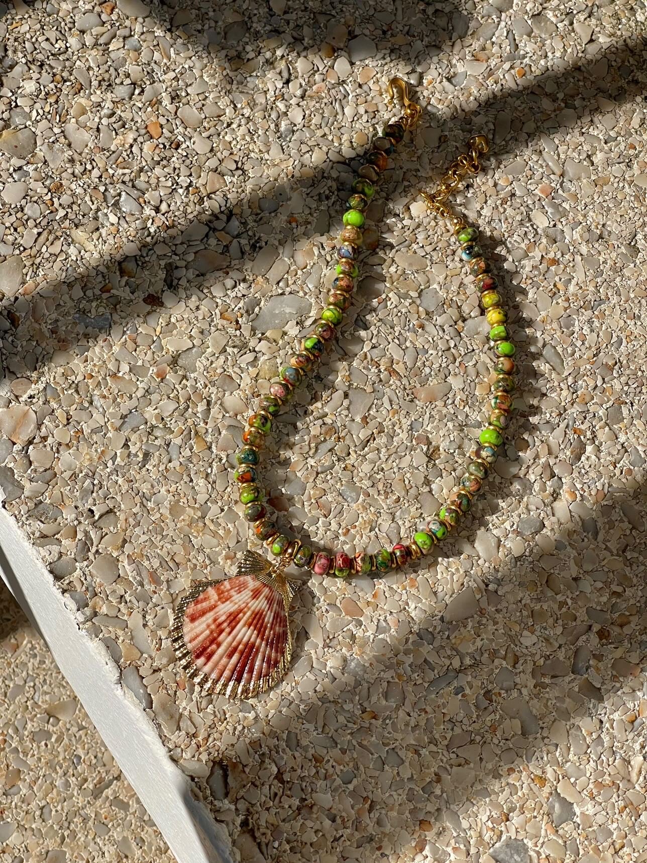 - Please note that no two semi-precious stones or shells are exactly the same; they range slightly in color and detailing due to being natural materials. Each shell has its own unique markings and there will be slight variations due to the individuality of each piece. We think it adds to their beauty!