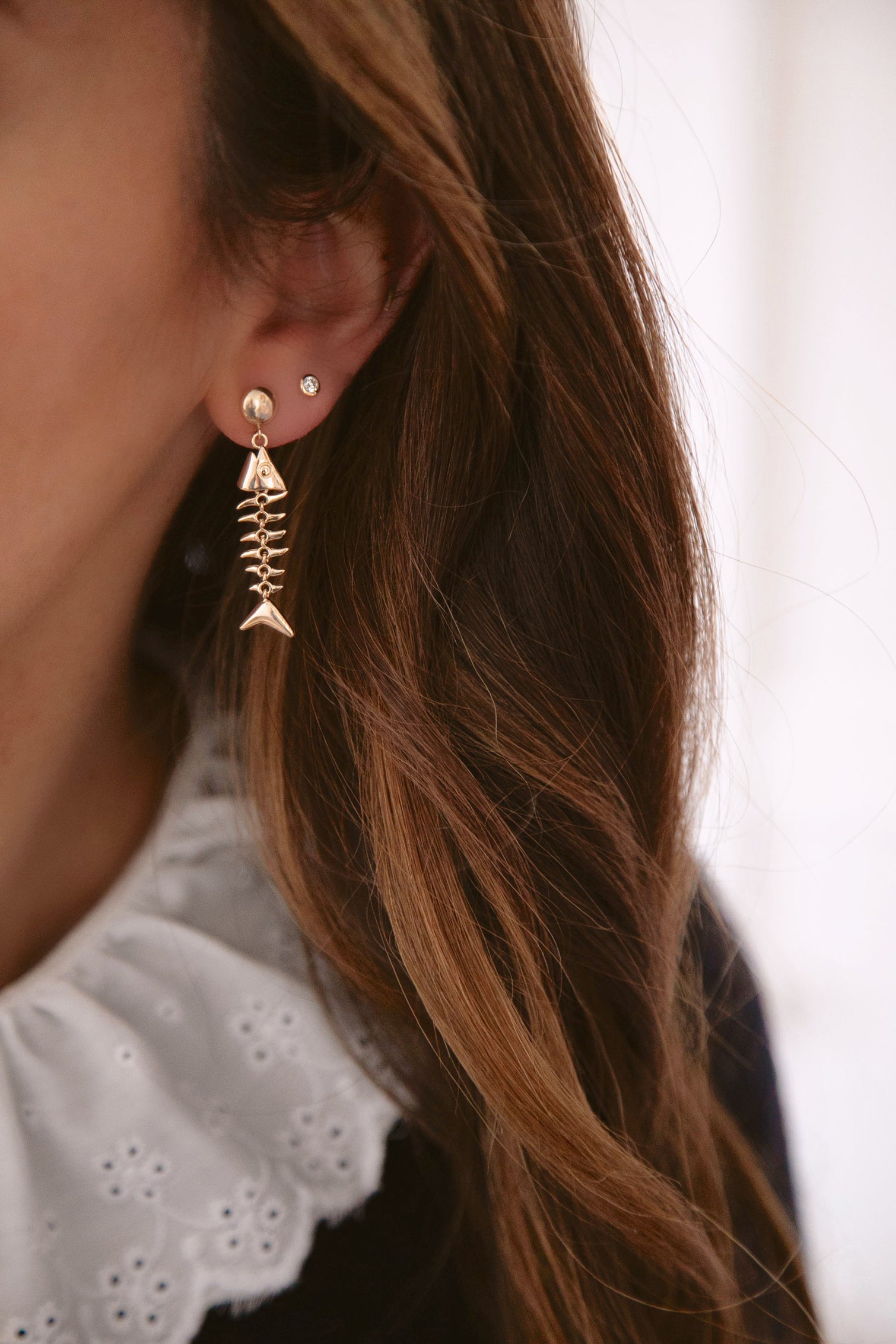 - Gold plated articulated fish hang from 14/20 gold filled earring toppers