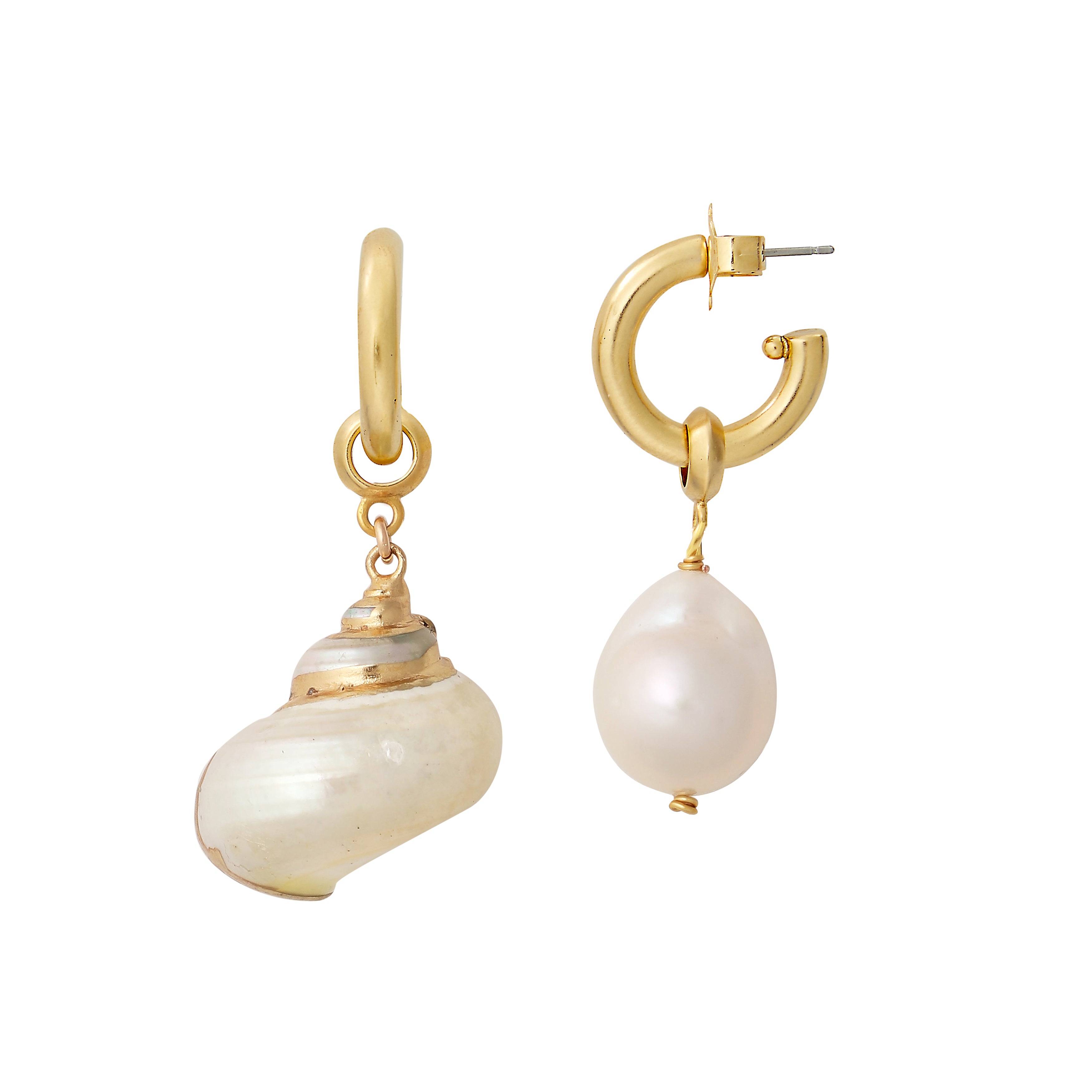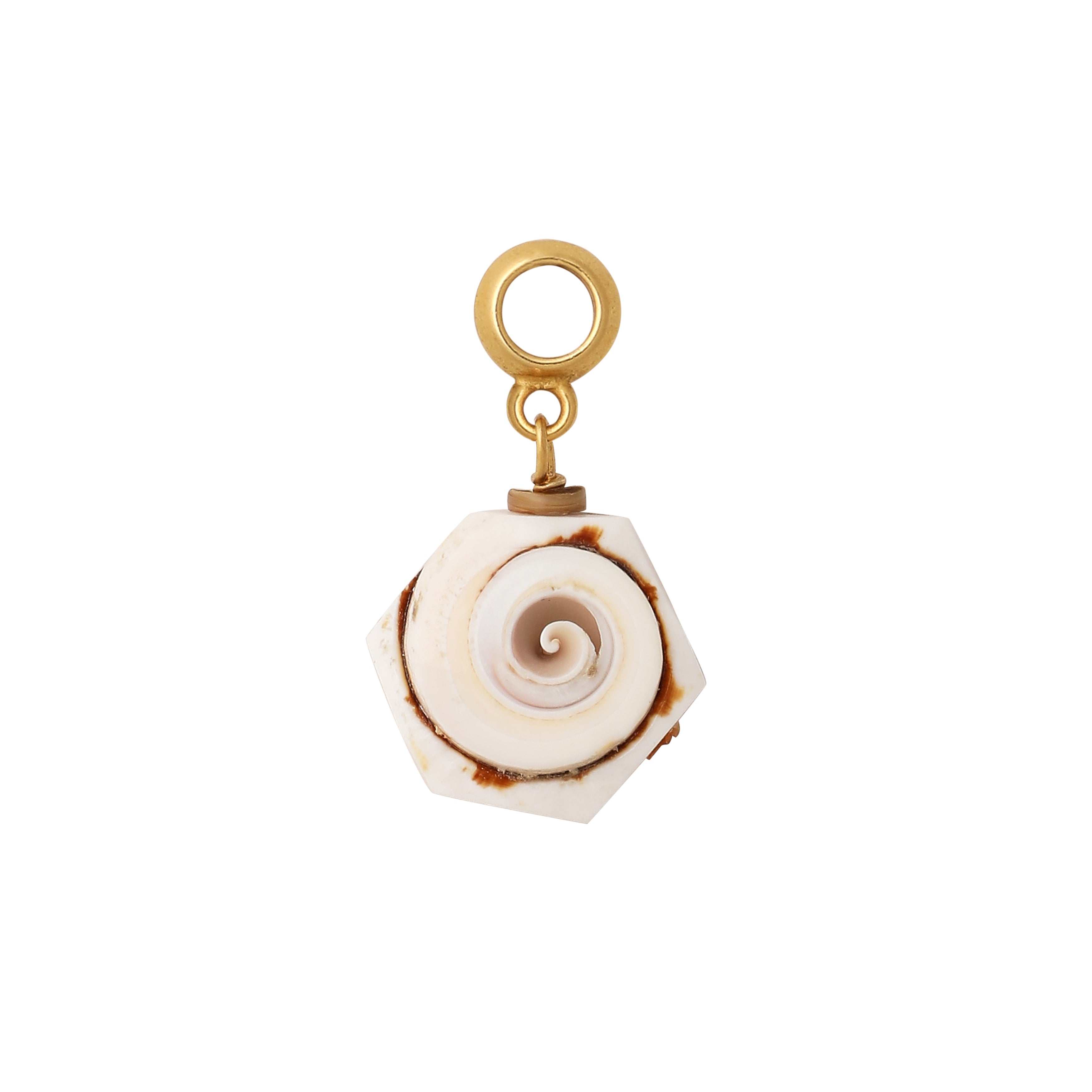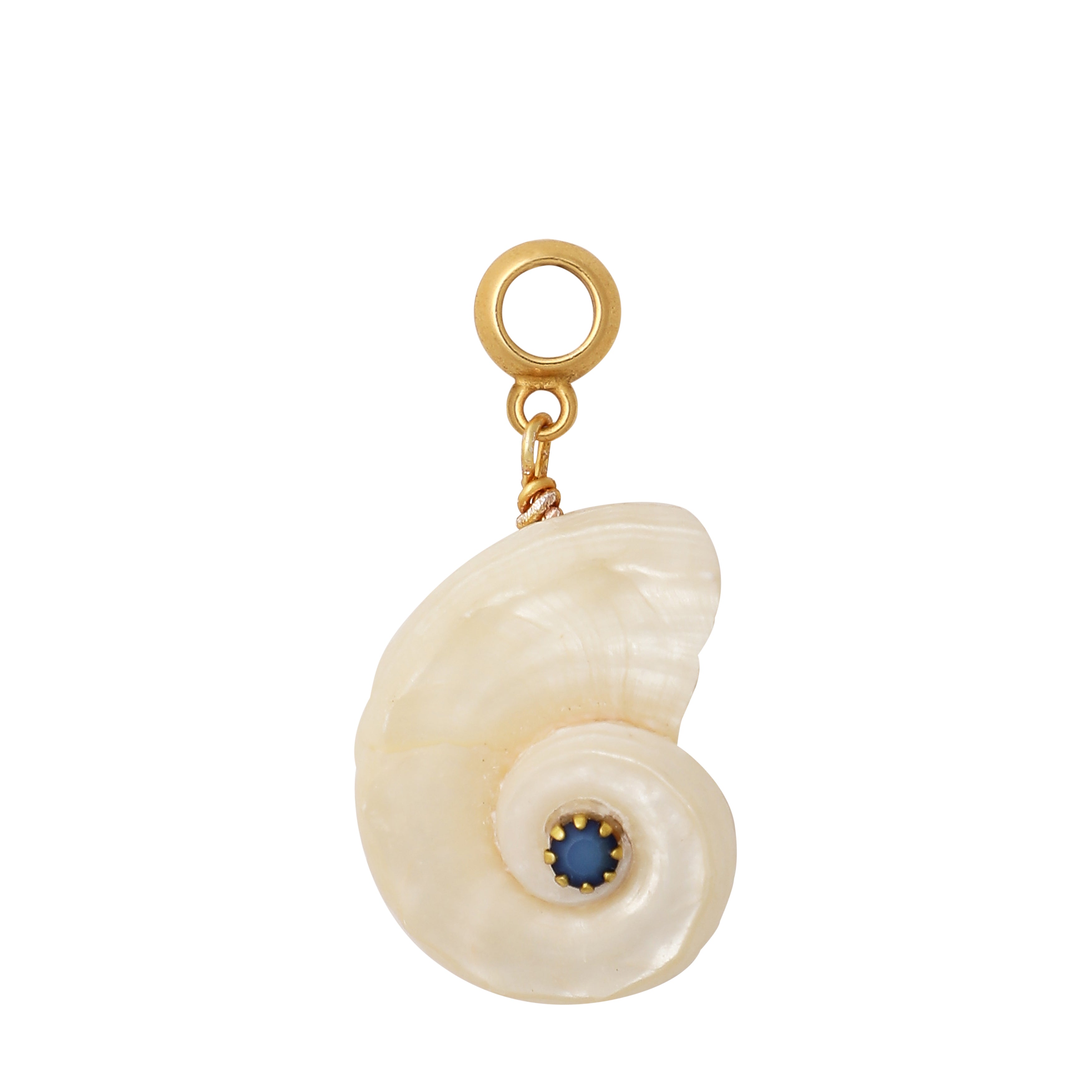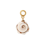 - A seashell charm - some rimmed with gold and set with crystal stones - hangs from a 24k antique gold plated ring