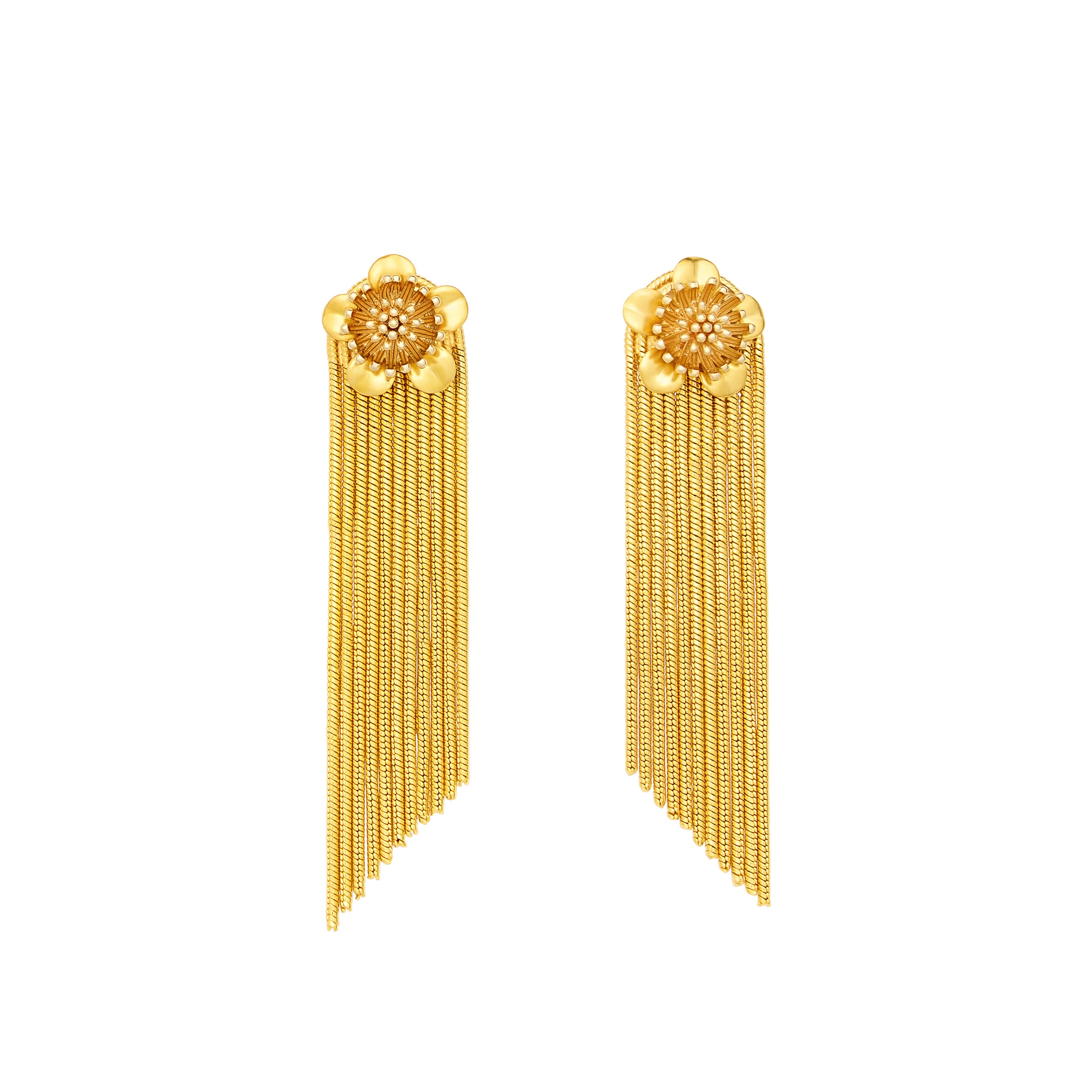 - 24k antique gold plated cascading fringe and floral earring on stainless steel hypoallergenic posts