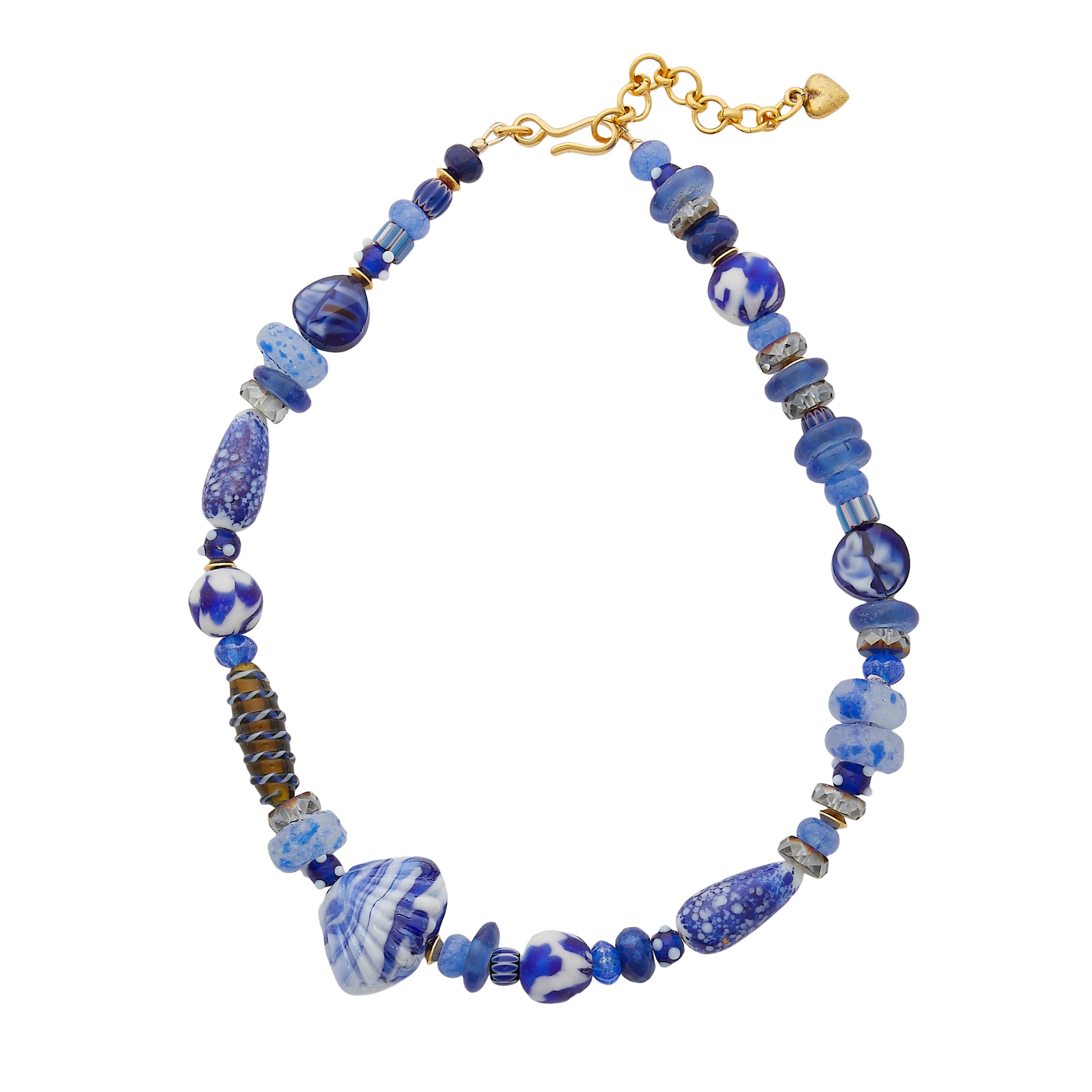 - A strand of semi-precious gemstone and vintage glass beads in a variety of shapes and sizes