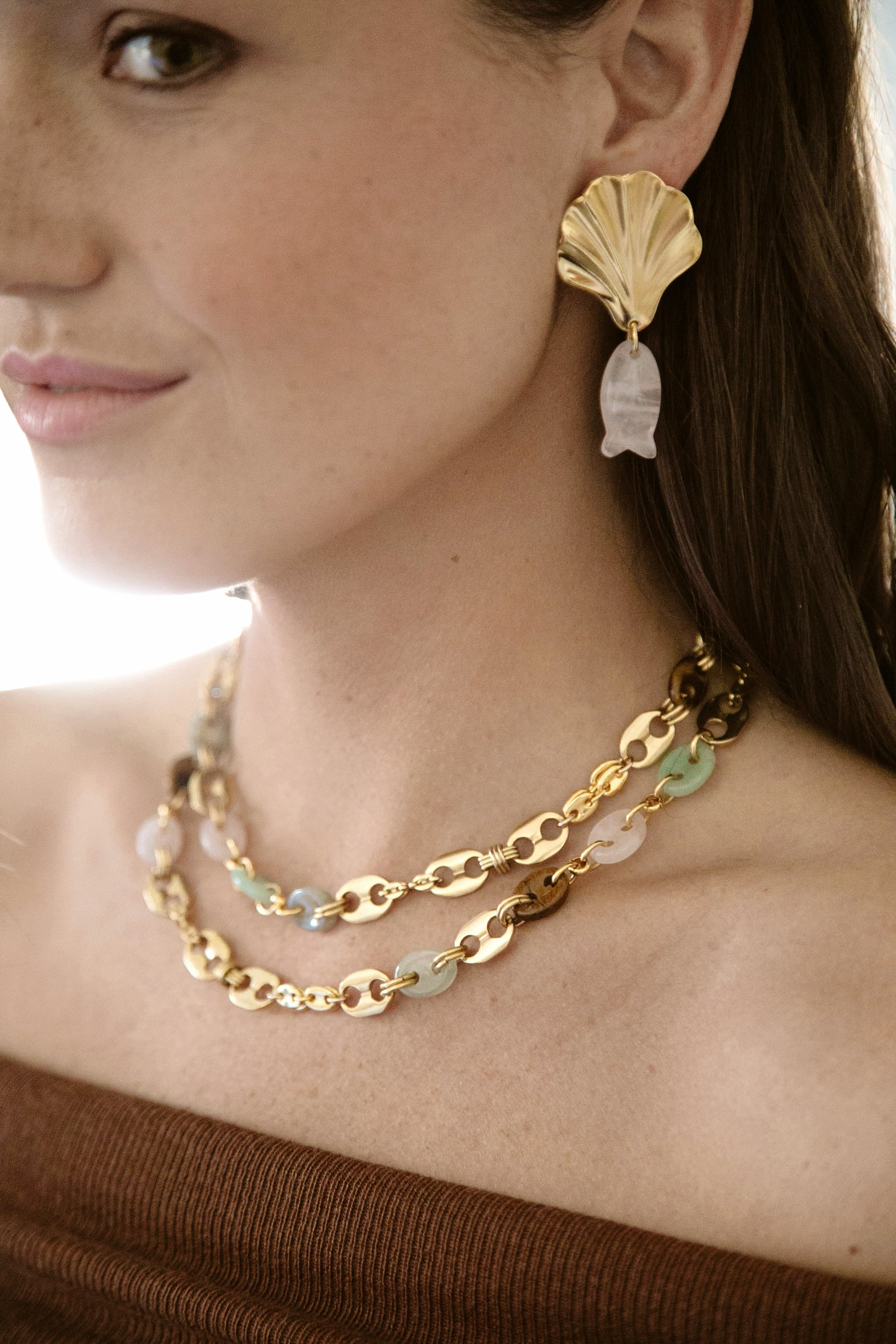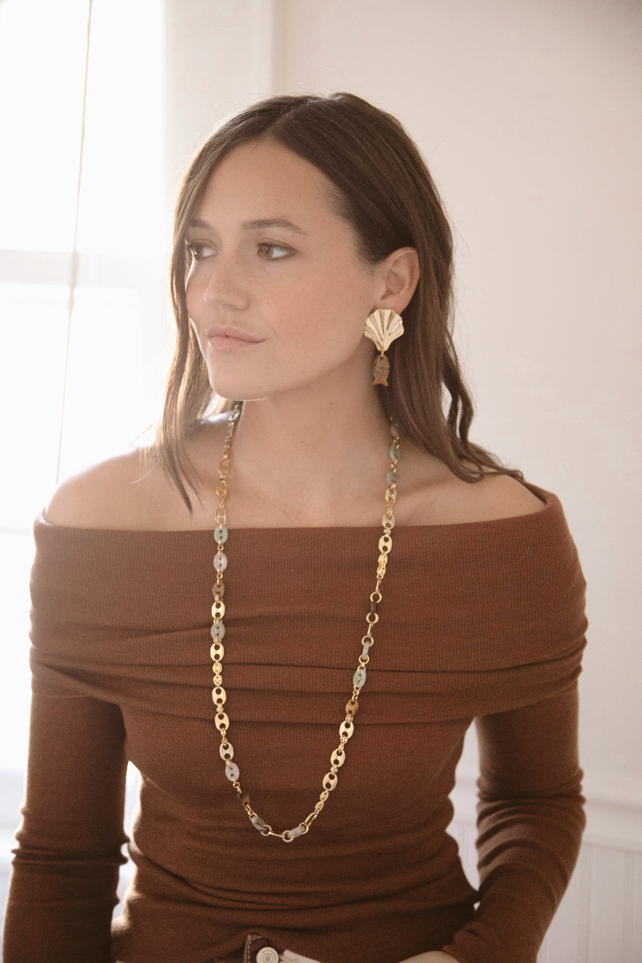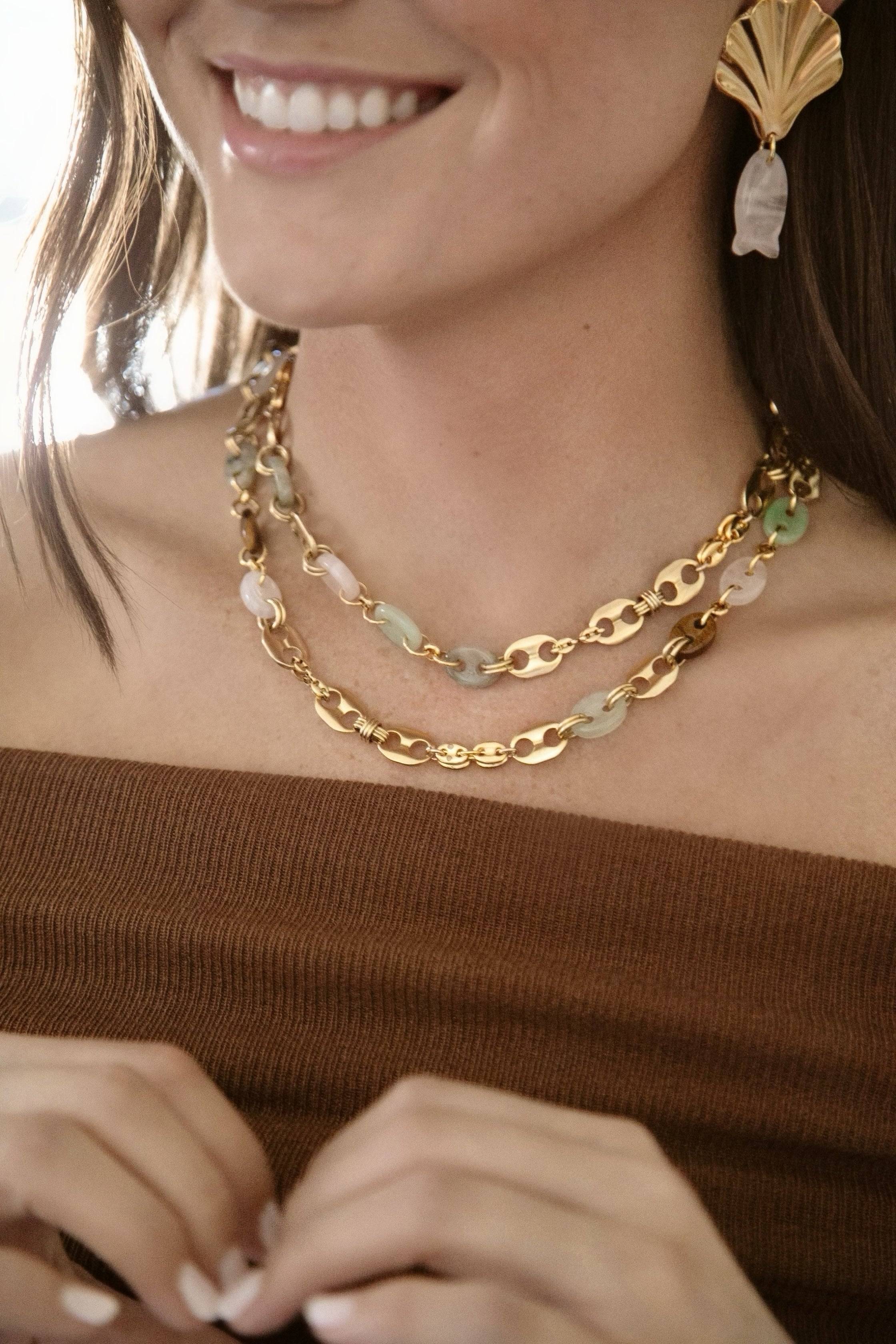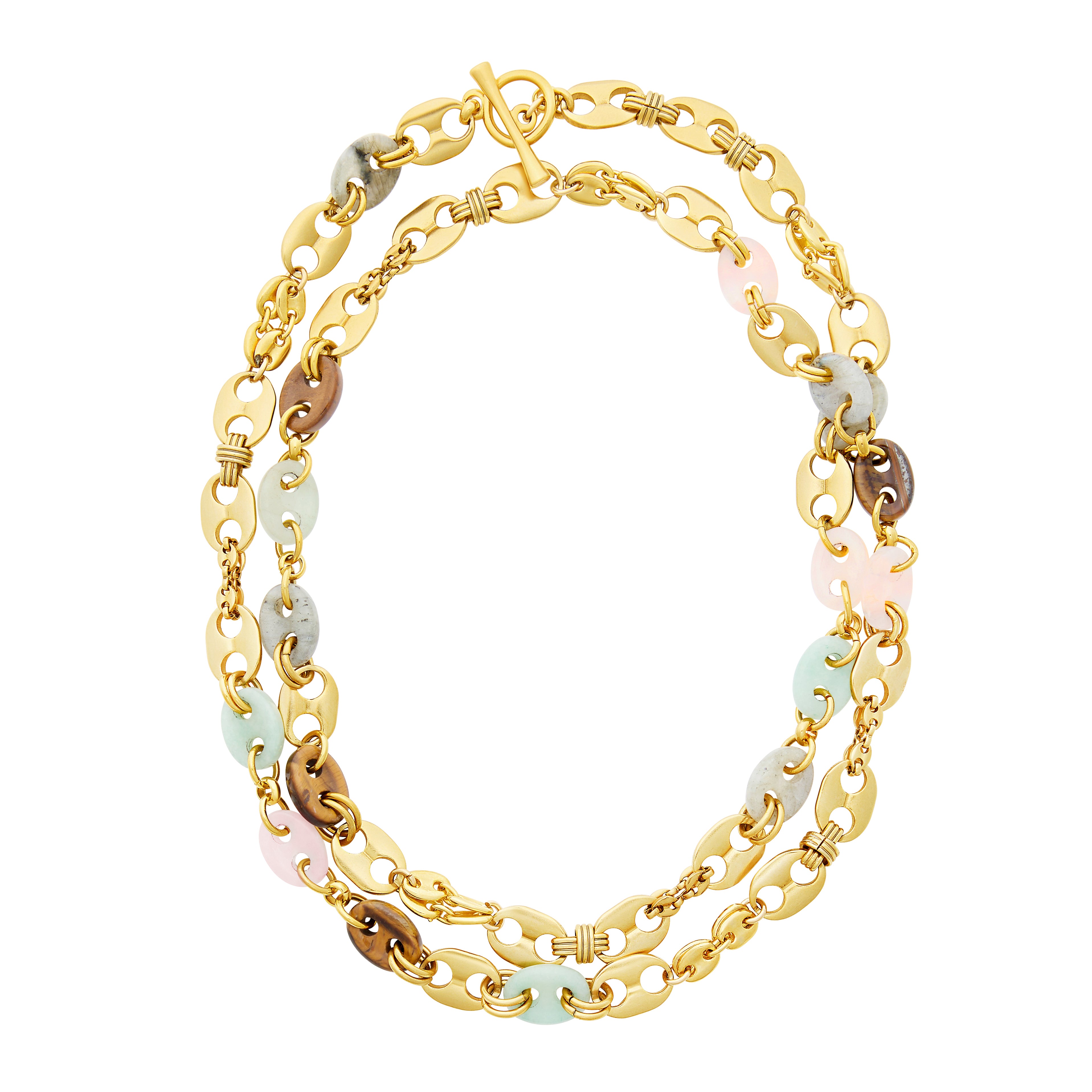 - This necklace can be worn doubled as a close-to-the-neck necklace or singled as a long strand necklace